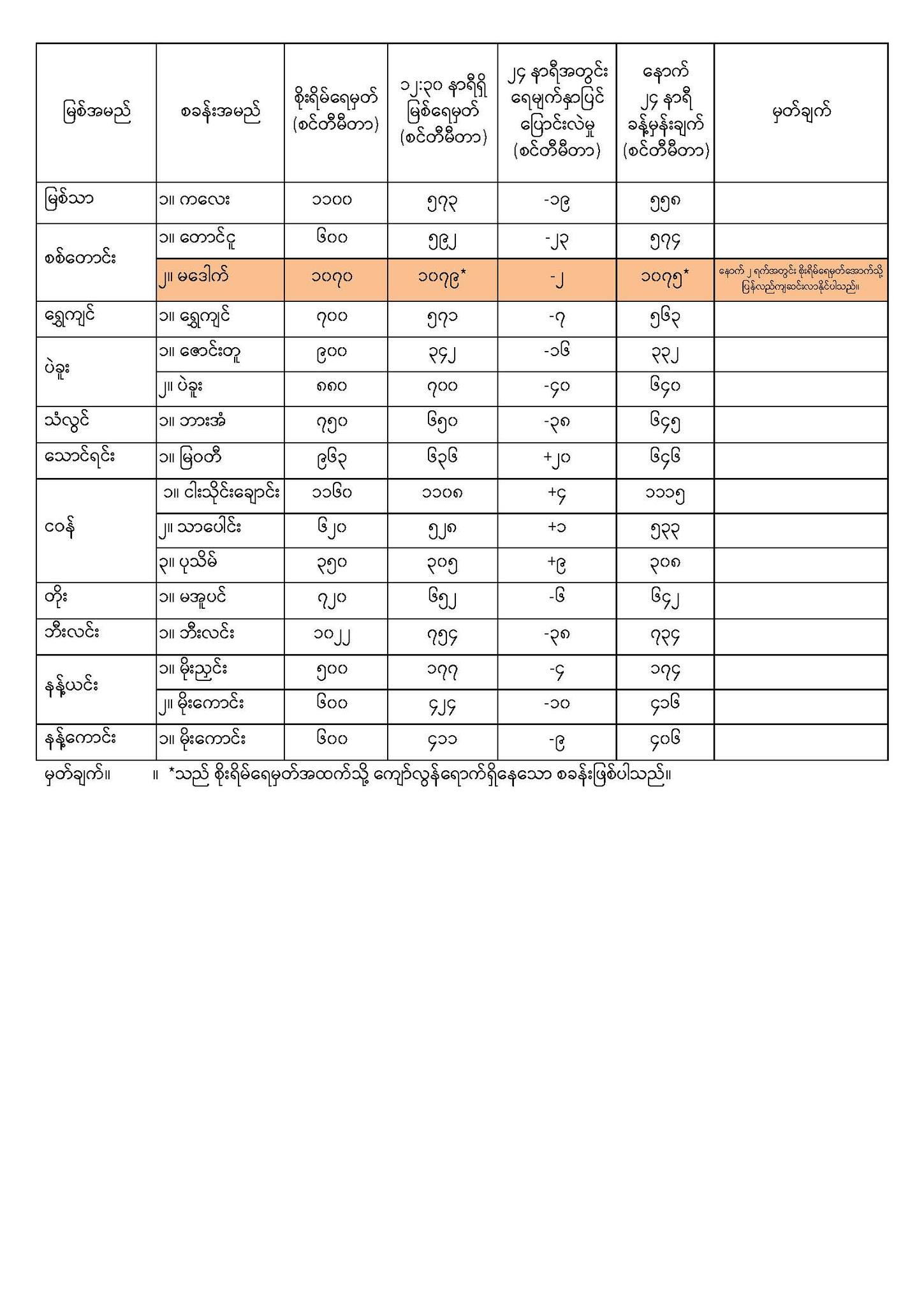 Sep 5,2025 |02:13 | ၅-၉-၂၀၂၅ မိုးလေဝသနှင့်ဇလဗေဒညွှန်ကြားမှုဦးစီးဌာနမှ ၅-၉-၂၀၂၅ ရက်နေ့ နေ့လယ် ၁၂:၃၀ နာရီအချိန်တွင် တိုင်းတာရရှိသော မြစ်ရေအခြေအနေများကို သိရှိနိုင်ပါရန် ဖော်ပြလိုက်ပါတယ်… Crd> မိုး/ဇလ