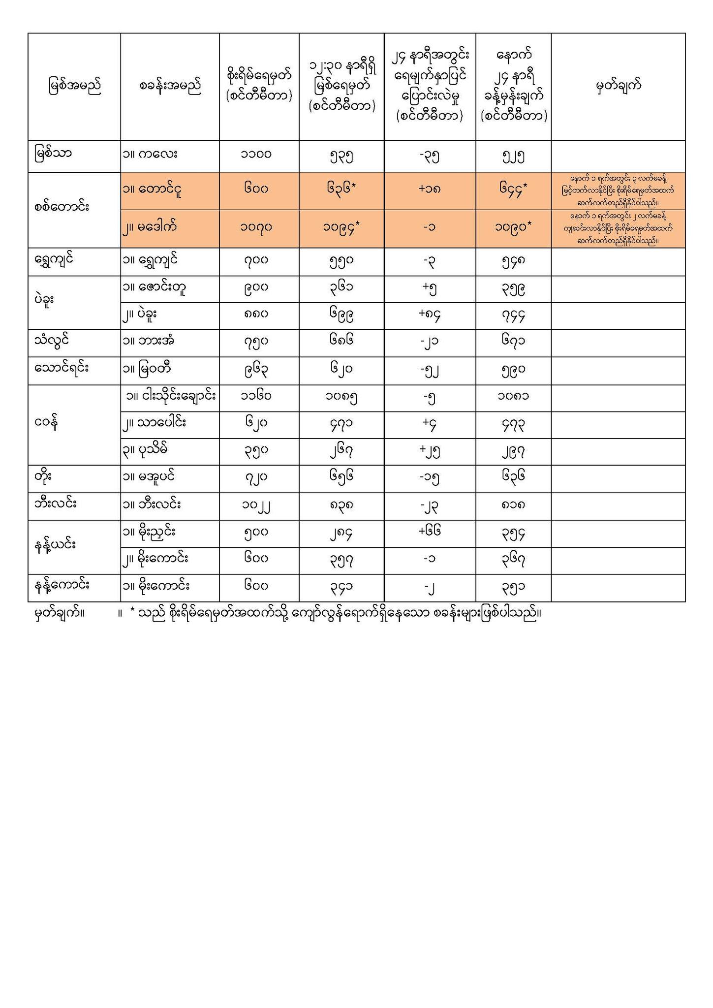 Oct 2,2025 |02:21 | ၂-၁၀-၂၀၂၅ မိုးလေဝသနှင့်ဇလဗေဒညွှန်ကြားမှုဦးစီးဌာနမှ ၂-၁၀-၂၀၂၅ ရက်နေ့တွင် ထုတ်ပြန်သည့် နေ့စဉ်မြစ်ရေခန့်မှန်းချက်များကို ဖော်ပြလိုက်ပါတယ်... Crd> မိုး/ဇလ