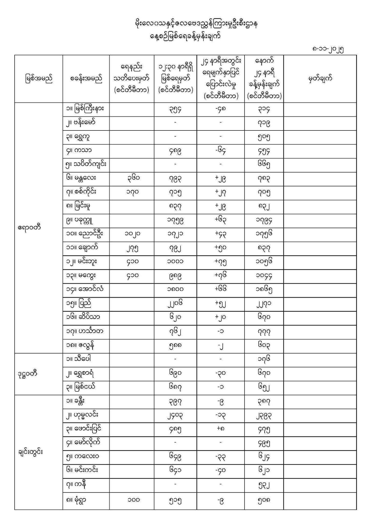Nov 8,2025 |02:32 | ၈-၁၁-၂၀၂၅ မိုးလေဝသနှင့်ဇလဗေဒညွှန်ကြားမှုဦးစီးဌာနမှ ၈-၁၁-၂၀၂၅ ရက်နေ့တွင် ထုတ်ပြန်သည့် နေ့စဉ်မြစ်ရေခန့်မှန်းချက်များကို ဖော်ပြလိုက်ပါတယ်... Crd> မိုး/ဇလ