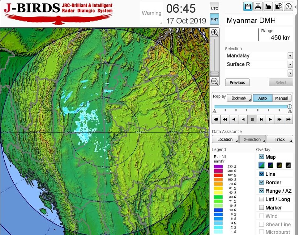 မန္တလေးမြို့နှင့်အနီးတစ်ဝိုက်အတွက်ယနေ့ညနေအထိခန့်မှန်းချက်။ နေရာကွက်ကျား မိုးထစ်ချုန်းရွာနိုင်ပါသည်။ ရွာရန်ရာနှုန်း(၆၀) ဖြစ်ပါသည်။