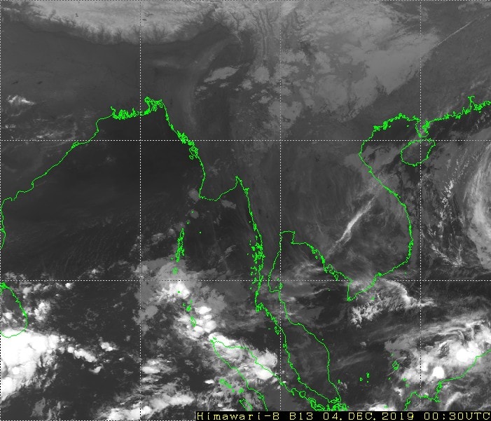 ဘင်္ဂလားပင်လယ်အော်အခြေအနေ။ ကပ္ပလီပင်လယ်ပြင်နှင့် ဘင်္ဂလားပင်လယ်အော်တောင်ပိုင်းတို့တွင် တိမ် အသင့်အတင့်မှ တိမ်ထူထပ်နေပြီး၊ ကျန်ဘင်္ဂလားပင်လယ်အော်တွင် တိမ်အနည်းငယ် ဖြစ်ထွန်းနေပါသည်။
