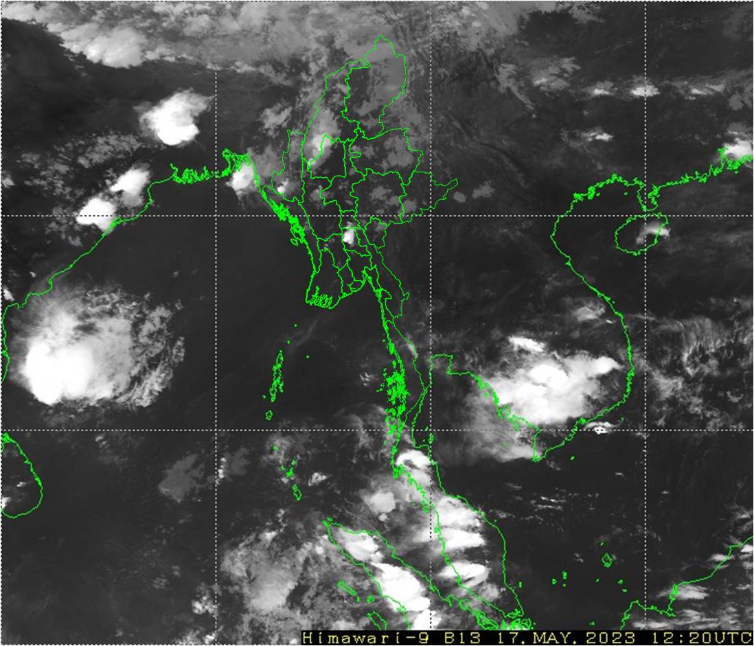 မိုးတိမ်တောင်ဖြစ်ပေါ်မှု အခြေအနေ။ စစ်ကိုင်းတိုင်းဒေသကြီး အထက်ပိုင်း၊ မကွေးတိုင်းဒေသကြီး၊ ပဲခူးတိုင်းဒေသကြီးနှင့် ချင်းပြည်နယ်တို့တွင် မိုးတိမ်တောင်များဖြစ်ထွန်းနေပြီး၊ အဆိုပါ မိုးတိမ်တောင်များ ရွေ့လျားရာနေရာတစ်လျှောက်တွင် မိုးရွာသွန်းခြင်းနှင့်အတူ လေပြင်းတိုက်ခတ်ခြင်း၊ မိုးထစ်ချုန်းခြင်း၊ မိုးကြိုးပစ်ခြင်း၊ လျှပ်စီးလက်ခြင်းနှင့် မိုးသီးကြွေခြင်း စသည့် မိုးလေဝသဖြစ်စဉ်များ ဖြစ်ပေါ်နိုင်ပါသဖြင့် ကြိုတင်သတိပြုနိုင်ပါရန် အကြံပြုအပ်ပါသည်။