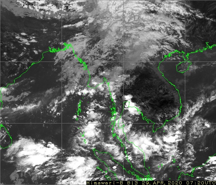 ဘင်္ဂလားပင်လယ်အော်အခြေအနေ။ ကပ္ပလီပင်လယ်ပြင်နှင့် ဘင်္ဂလားပင်လယ်အော်တို့တွင် တိမ်အသင့်အတင့် ဖြစ်ထွန်းနေပါသည်။