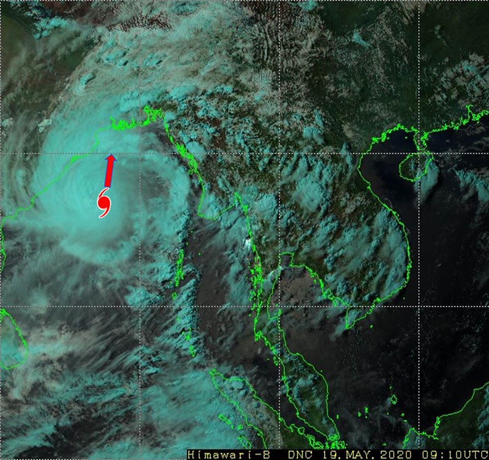 ဘင်္ဂလားပင်လယ်အော်အခြေအနေ။ ယနေ့မြန်မာစံတော်ချိန် (၁၂:၃၀)နာရီအချိန် တိုင်းထွာချက်များအရ ဘင်္ဂလားပင်လယ်အော်အနောက်အလယ်ပိုင်းတွင် ဖြစ်ပေါ် နေသော စူပါဆိုင်ကလုန်းမုန်တိုင်း(Super Cyclonic Storm) အမ်ဖန်(AMPHAN)သည် အလွန့်အလွန်အားကောင်းသော ဆိုင်ကလုန်းမုန်တိုင်း(Extremely Severe Cyclonic Storm) အမ်ဖန်(AMPHAN)အဖြစ်သို့ အားလျော့သွာခဲ့ပြီး၊ မြောက်-အရှေ့မြောက်ဘက်သို့ ရွေ့လျားခဲ့ကာ၊ အိန္ဒိယနိုင်ငံ၊ ပါရာဒစ်ပ်မြို့ (Paradip) (ဩရိဿ-Odisha)၏ တောင်ဘက် ရေမိုင်(၂၄၀)မိုင်ခန့်၊ ဒီဂါမြို့ (Digha)၏ တောင်-အနောက်တောင်ဘက် ရေမိုင် (၃၂၀)မိုင်ခန့်၊ ဘင်္ဂလားဒေ့ရှ်နိုင်ငံ၊ ကမ်ပူပါရာမြို့(Khepupara) ၏ တောင်-အနောက်တောင်ဘက် ရေမိုင် (၃၉၀)မိုင်ခန့်၊ မြန်မာနိုင်ငံ၊ ပုသိမ်မြို့(Pathein)၏ အနောက်-အနောက်တောင်ဘက် ရေမိုင် (၄၅၀) မိုင်ခန့်နှင့် ဂွမြို့(GWA) ၏ အနောက်-အနောက်တောင်ဘက် ရေမိုင် (၄၅၀) မိုင်ခန့်အကွာ ပင်လယ်ပြင်ကို ဗဟိုပြုနေပါသည်။ ဘင်္ဂလားပင်လယ်အော်အနောက်အလယ်ပိုင်းနှင့် အနောက်မြောက်ပိုင်းတို့တွင် တိမ်ထူထပ်နေပြီး၊ ကပ္ပလီပင်လယ်ပြင်နှင့် ကျန်ဘင်္ဂလားပင်လယ်အော်တို့တွင် တိမ်အသင့်အတင့်မှ တိမ်ထူထပ်နေပါသည်။