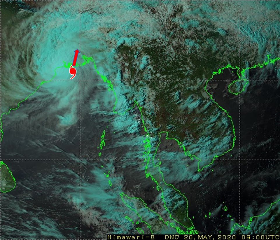 ဘင်္ဂလားပင်လယ်အော်အခြေအနေ။ ယနေ့မြန်မာစံတော်ချိန် (၁၅:၃၀) နာရီအချိန် တိုင်းထွာချက်များအရ ဘင်္ဂလားပင်လယ်အော်အနောက် မြောက်ပိုင်းတွင် ဖြစ်ပေါ်နေသော အလွန့်အလွန် အားကောင်းသော ဆိုင်ကလုန်းမုန်တိုင်း (Extremely Severe Cyclonic Storm) အမ်ဖန် (AMPHAN)သည် မြောက်-အရှေ့မြောက်ဘက်သို့ ရွေ့လျားခဲ့ပြီး၊ အိန္ဒိယ နိုင်ငံ၊ အနောက်ဘင်္ဂလားပြည်နယ်၊ ဒီဂါမြို့(Digha)နှင့် ဘင်္ဂလားဒေ့ရှ်နိုင်ငံ၊ ဟတီရာကျွန်းစု(Hatiya Islands) တို့ကြားမှ စတင်ဖြတ်ကျော်လျက်ရှိပါသည်။ ကပ္ပလီ ပင်လယ်ပြင်နှင့် ဘင်္ဂလားပင်လယ်အော်အရှေ့တောင်ပိုင်းတို့တွင် မုတ်သုံလေ အားအသင့်အတင့်မှ အားကောင်းနေပြီး၊ ဘင်္ဂလားပင်လယ်အော်မြောက်ပိုင်းနှင့် အနောက်အလယ်ပိုင်းတို့တွင် တိမ်ထူထပ်နေကာ၊ ကျန်ဘင်္ဂလားပင်လယ်အော်တွင် တိမ်အသင့်အတင့်မှ တိမ်ထူထပ်နေပါသည်။