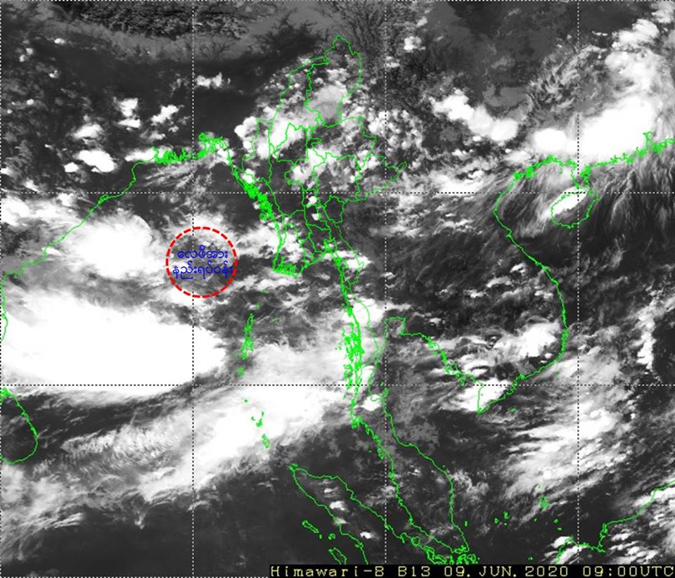 ဘင်္ဂလားပင်လယ်အော်အခြေအနေ။ ယနေ့မြန်မာစံတော်ချိန် (၁၃:၃၀)နာရီအချိန် တိုင်းထွာချက်များအရ ဘင်္ဂလားပင်လယ်အော်အရှေ့အလယ်ပိုင်းတွင် လေဖိအားနည်းရပ်ဝန်းတစ်ခု ဖြစ်ပေါ်နေပါသည်။ အဆိုပါ လေဖိအားနည်းရပ်ဝန်းသည် နောက်(၄၈)နာရီအတွင်း ပိုမိုအားကောင်းလာနိုင်သည်ဟု ခန့်မှန်းရပါသည်။ ကပ္ပလီပင်လယ်ပြင်နှင့် ဘင်္ဂလားပင်လယ်အော်တောင်ပိုင်းတို့တွင် မုတ်သုံလေ အားကောင်းရာမှ အားအလွန်ကောင်းနေပြီး၊ ကျန်ဘင်္ဂလားပင်လယ်အော်တွင် မုတ်သုံလေ အားအနည်းငယ်မှ အားအသင့်အတင့်ရှိနေပါသည်။