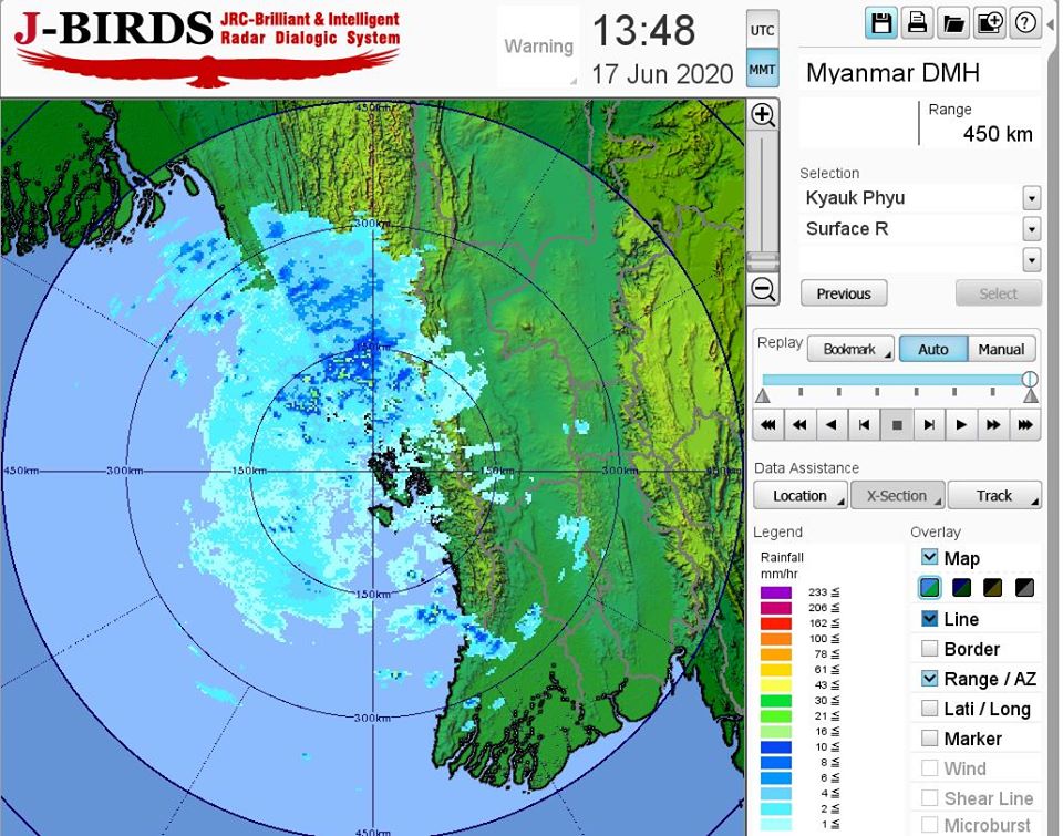 ယနေ့နံနက်(၀၉:၃၀)နာရီအချိန်ထိ မိုးလေဝသတိုင်းထွာချက်အကျဉ်းချုပ်။ လွန်ခဲ့သော(၂၄)နာရီအတွင်းက စစ်ကိုင်းတိုင်းဒေသကြီး အောက်ပိုင်းတွင် နေရာကွက်ကျား၊ မန္တလေးတိုင်းဒေသကြီး၊ မကွေးတိုင်းဒေသကြီးနှင့် ရှမ်းပြည်နယ်(မြောက်ပိုင်း)တို့တွင် နေရာကျဲကျဲ နှင့် ကျန်တိုင်းဒေသကြီးနှင့် ပြည်နယ်တို့တွင် နေရာအနှံ့အပြား မိုးထစ်ချုန်း ရွာခဲ့ပြီး၊ ပဲခူးတိုင်းဒေသကြီး၊ ရန်ကုန်တိုင်းဒေသကြီး၊ ရခိုင် ပြည်နယ်နှင့် မွန်ပြည်နယ်တို့တွင် ဒေသအလိုက်နှင့် တနင်္သာရီတိုင်းဒေသကြီးနှင့် ကရင်ပြည်နယ်တို့တွင် နေရာကွက်၍ မိုးကြီးခဲ့ပါသည်။ မှတ်သားဖွယ်ရာ မိုးရေချိန်များမှာ ဉက္ကံမြို့တွင် (၈.၂၇)လက်မ၊ သံတွဲမြို့တွင် (၈.၁၉)လက်မ၊ တောင်ကုတ်မြို့တွင် (၄.၈၀)လက်မ၊ ကျိုက္ခမီမြို့ တွင် (၄.၄၉)လက်မ၊ ရေးမြို့တွင် (၃.၇၈)လက်မ၊ မြောက်ဦးမြို့နှင့် ရွှေကျင်မြို့တို့တွင် (၃.၆၆)လက်မစီ၊ ကျောက်တော်မြို့တွင် (၃.၅၈) လက်မ၊ ကိုကိုးကျွန်းမြို့တွင် (၃.၃၈)လက်မ၊ မောင်တောမြို့တွင် (၃.၂၇)လက်မ၊ လောင်းလုံးမြို့တွင် (၃.၁၉)လက်မ၊ ရှမ်းရွာသစ်မြို့တွင် (၃.၁၅)လက်မ၊ မော်လမြိုင်မြို့တွင် (၃.၁၄)လက်မ၊ မဒေါက်မြို့တွင် (၃.၀၇)လက်မ၊ ချောင်းဆုံမြို့တွင် (၂.၉၅)လက်မ၊ ကျောက်ဖြူမြို့တွင် (၂.၈၇) လက်မ၊ မာန်အောင်မြို့တွင် (၂.၈၃)လက်မနှင့် ထားဝယ်မြို့တွင် (၂.၈၀)လက်မတို့ ဖြစ်ကြပါသည်။