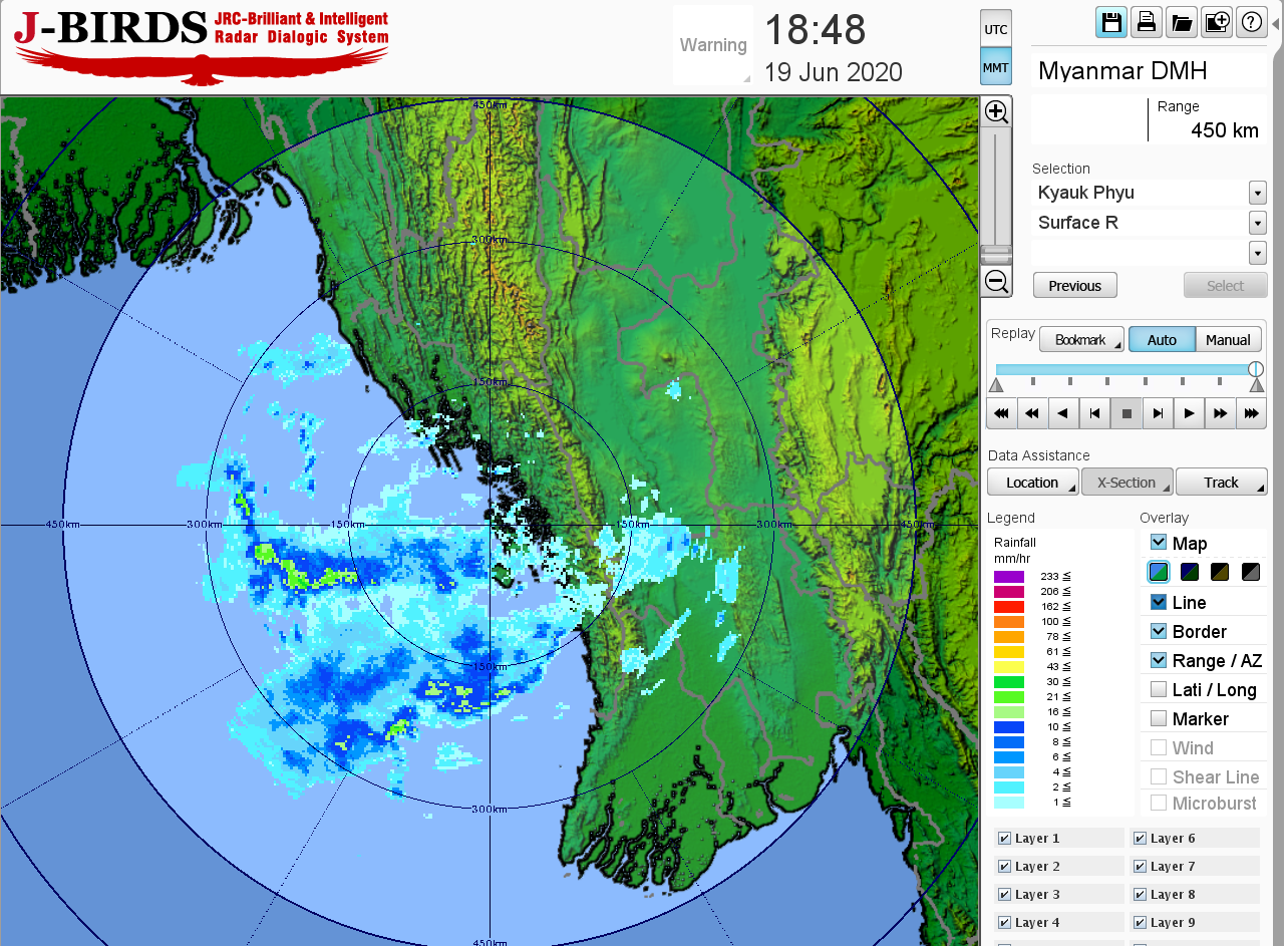 မနက်ဖြန်မွန်းတည့်ချိန်အထိခန့်မှန်းချက်။ စစ်ကိုင်းတိုင်းဒေသကြီးအောက်ပိုင်းတွင် နေရာကွက်ကျား၊ နေပြည်တော်၊ မန္တလေးတိုင်းဒေသကြီး၊ မကွေးတိုင်းဒေသကြီးနှင့် ရှမ်းပြည်နယ်(မြောက်ပိုင်း)တို့တွင် နေရာကျဲကျဲ၊ စစ်ကိုင်းတိုင်းဒေသကြီးအထက်ပိုင်း၊ ရှမ်းပြည်နယ်(တောင်ပိုင်းနှင့် အရှေ့ပိုင်း)၊ ချင်းပြည်နယ်နှင့် ကယားပြည်နယ်တို့တွင် နေရာစိပ်စိပ်နှင့် ကျန်တိုင်းဒေသကြီးနှင့် ပြည်နယ်တို့တွင် နေရာအနှံ့အပြား မိုးထစ်ချုန်းရွာပြီး ရခိုင်ပြည်နယ်တွင် ဒေသအလိုက်နှင့် စစ်ကိုင်းတိုင်းဒေသကြီး အထက်ပိုင်းနှင့် မွန်ပြည်နယ်တို့တွင် နေရာကွက်၍ မိုးကြီးနိုင်ပါသည်။ ရွာရန်ရာနှုန်းပြည့်ဖြစ်ပါသည်။