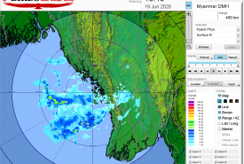 ရန်ကုန်မြို့နှင့်အနီးတစ်ဝိုက်အတွက်မနက်ဖြန်မွန်းတည့်ချိန်အထိခန့်မှန်းချက်။ မိုးတစ်ကြိမ်၊ နှစ်ကြိမ် ထစ်ချုန်းရွာမည်။ ရွာရန်ရာနှုန်းပြည့် ဖြစ်ပါသည်။