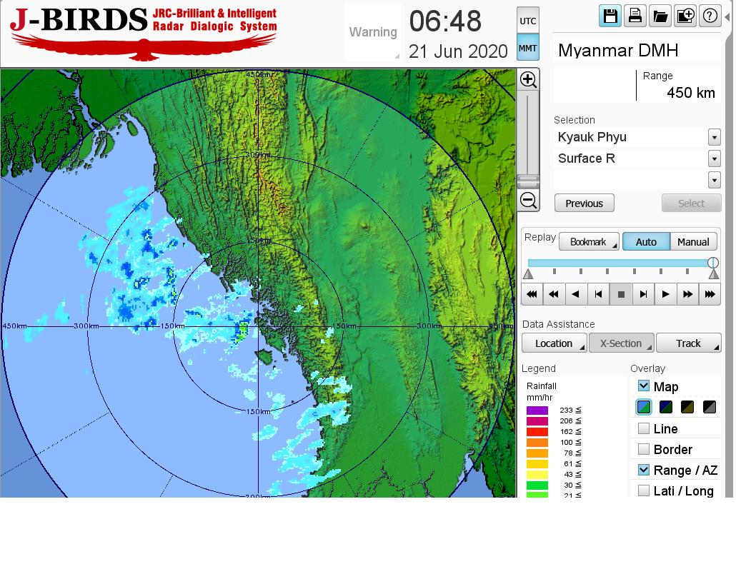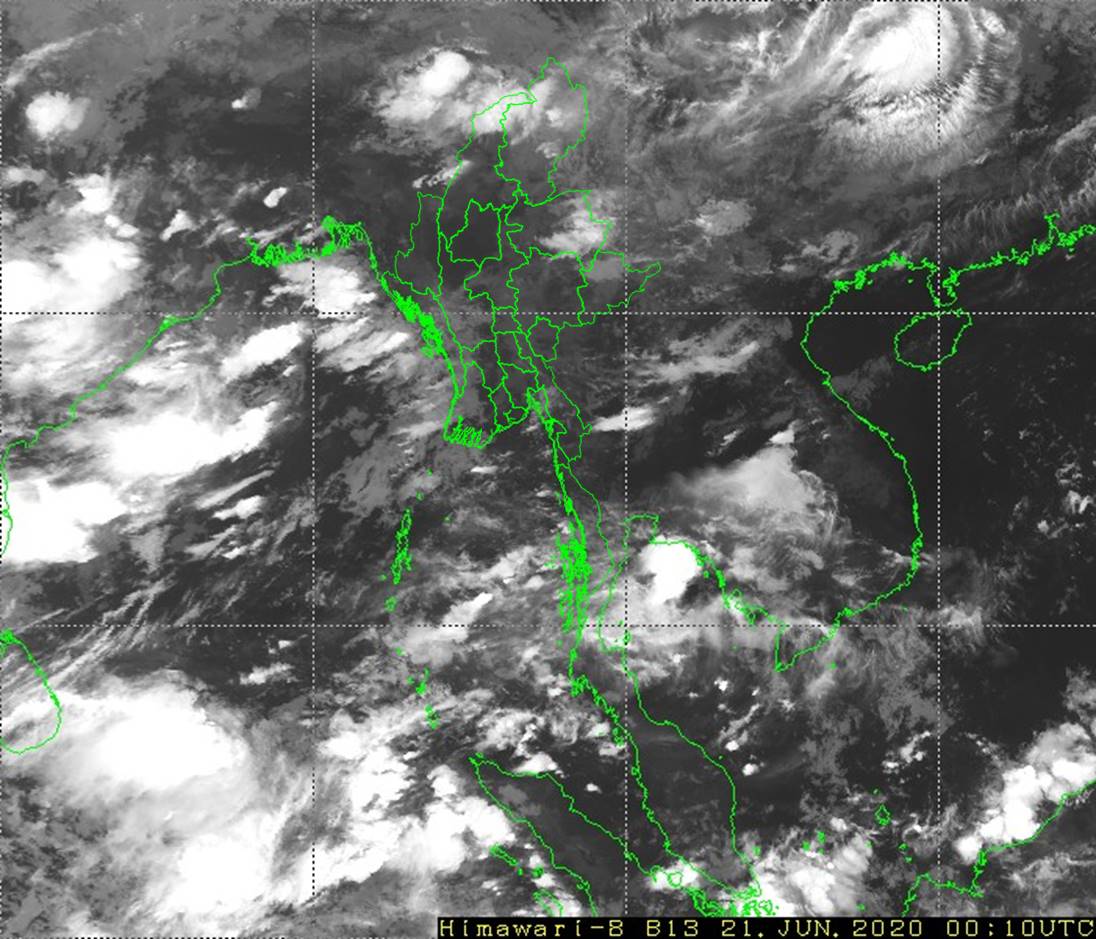 ယနေ့ညနေအထိခန့်မှန်းချက်။ စစ်ကိုင်းတိုင်းဒေသကြီးအောက်ပိုင်း၊ မန္တလေးတိုင်းဒေသကြီးနှင့် မကွေးတိုင်း ဒေသကြီးတို့တွင် နေရာကွက်ကျား၊ နေပြည်တော်၊ ရှမ်းပြည်နယ်(မြောက်ပိုင်းနှင့် အရှေ့ပိုင်း)နှင့် ကယား ပြည်နယ်တို့တွင် နေရာကျဲကျဲ၊ စစ်ကိုင်းတိုင်းဒေသကြီးအထက်ပိုင်း၊ တနင်္သာရီတိုင်းဒေသကြီး၊ ကချင်ပြည်နယ်၊ ရှမ်းပြည်နယ်(တောင်ပိုင်း)၊ ကရင်ပြည်နယ်နှင့် မွန်ပြည်နယ်တို့တွင် နေရာစိပ်စိပ်နှင့် ကျန်တိုင်းဒေသကြီးနှင့် ပြည်နယ်တို့တွင် နေရာအနှံ့အပြား မိုးထစ်ချုန်းရွာပြီး၊ ရခိုင်ပြည်နယ်တွင် နေရာကွက်၍ မိုးကြီးနိုင်ပါသည်။ ရွာရန်ရာနှုန်းပြည့် ဖြစ်ပါသည်။