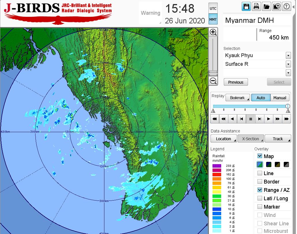 ဘင်္ဂလားပင်လယ်အော်အခြေအနေ။ ကပ္ပလီပင်လယ်ပြင်နှင့် ဘင်္ဂလားပင်လယ်အော်တောင်ပိုင်းတို့တွင် မုတ်သုံလေ အားအသင့်အတင့်မှ အားကောင်းနေပြီး၊ ကျန်ဘင်္ဂလားပင်လယ်အော်တွင် မုတ်သုံလေအားနည်း နေပါသည်။