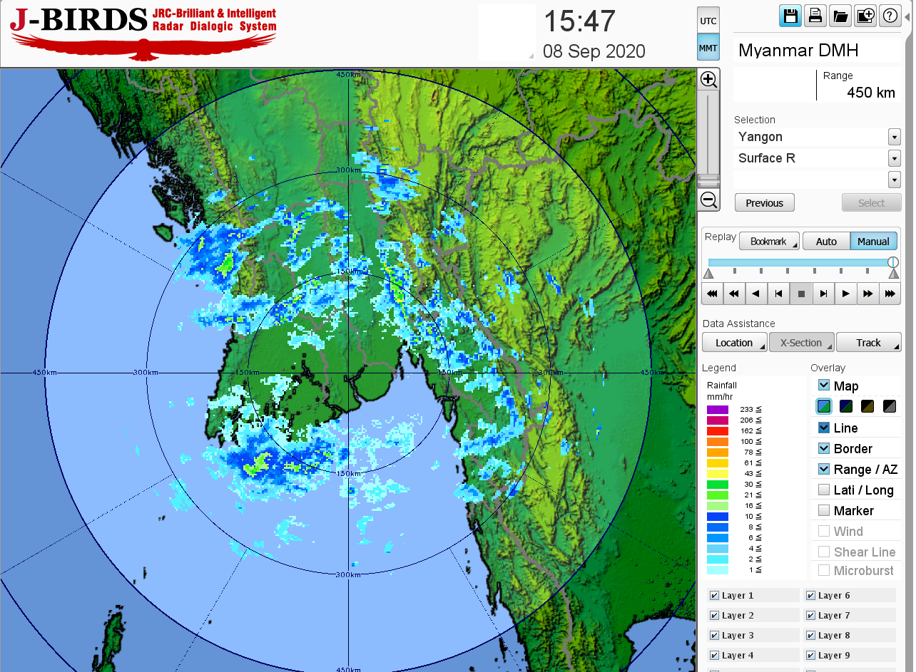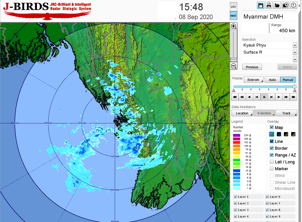 ဘင်္ဂလားပင်လယ်အော်အခြေအနေ။ ကပ္ပလီပင်လယ်ပြင်နှင့် ဘင်္ဂလားပင်လယ်အော်တောင်ပိုင်းတို့တွင် မုတ်သုံလေ အားအသင့်အတင့် ရှိနေပြီး၊ ကျန်ဘင်္ဂလားပင်လယ်အော်တွင် မုတ်သုံလေ အားနည်းနေပါသည်။