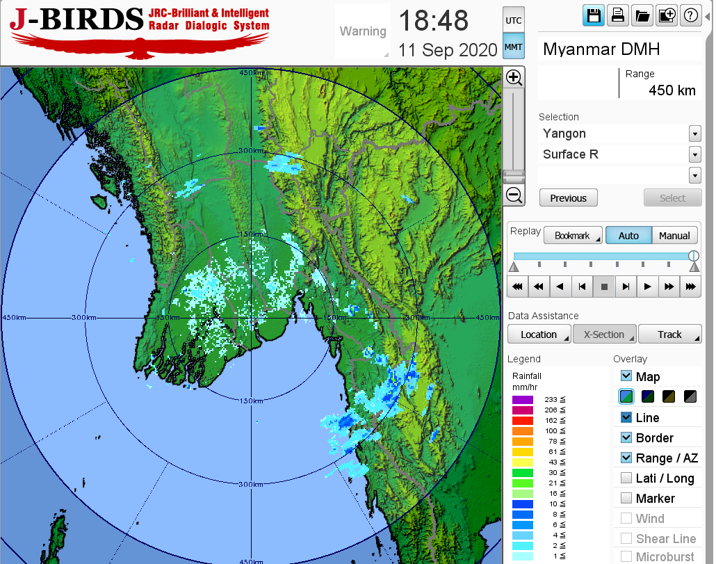 ဘင်္ဂလားပင်လယ်အော်အခြေအနေ။ ကပ္ပလီပင်လယ်ပြင်နှင့် ဘင်္ဂလားပင်လယ်အော် တောင်ပိုင်းတို့တွင် မုတ်သုံလေ အားအနည်းငယ်မှ အားအသင့်အတင့်ရှိနေပြီး၊ ကျန်ဘင်္ဂလားပင်လယ်အော်တွင် မုတ်သုံလေ အားနည်းနေပါသည်။