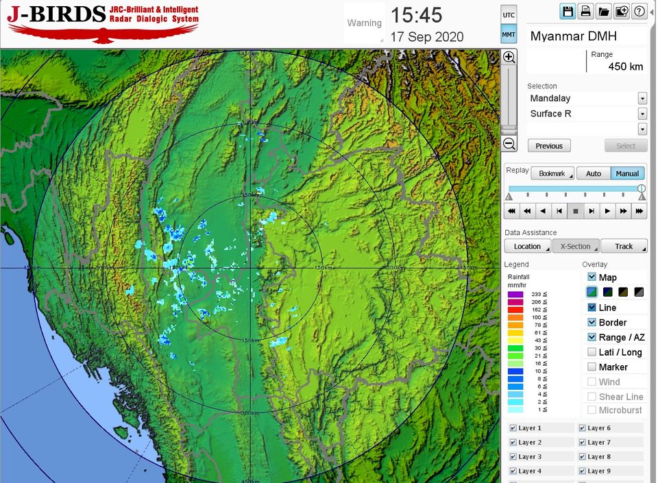မန္တလေးမြို့နှင့်အနီးတစ်ဝိုက်အတွက် မနက်ဖြန်နံနက်အထိခန့်မှန်းချက်။ နေရာကွက်ကျား မိုးထစ်ချုန်းရွာမည်။ ရွာရန်ရာနှုန်းပြည့် ဖြစ်ပါသည်။