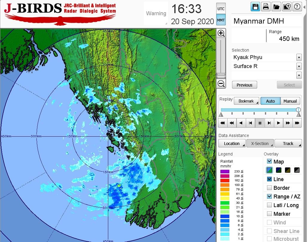 ဘင်္ဂလားပင်လယ်အော်အ‌ခြေအနေ။ ယနေ့မြန်မာစံတော်ချိန် (၁၈:၃၀)နာရီအချိန် တိုင်းထွာချက်များအရ ဘင်္ဂလားပင်လယ်အော်အရှေ့မြောက်ပိုင်းတွင် ဖြစ်ပေါ်နေသော လေဖိအားနည်းရပ်ဝန်းသည် ဆက်လက် တည်ရှိနေပါသည်။ ကပ္ပလီပင်လယ်ပြင်နှင့် ဘင်္ဂလားပင်လယ်အော်တို့တွင် မုတ်သုံလေ အားကောင်းရာမှ အား အလွန်ကောင်းနေပါသည်။