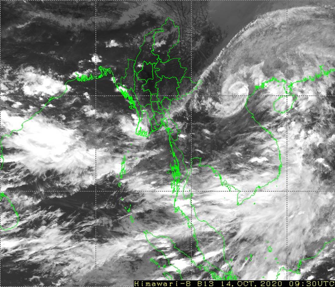 ဘင်္ဂလားပင်လယ်အော်အ‌ခြေအနေ။ ဘင်္ဂလားပင်လယ်အော်မြောက်ပိုင်းနှင့် အရှေ့အလယ်ပိုင်းတို့တွင် တိမ် အသင့်အတင့် ဖြစ်ထွန်းနေပါသည်။ ကပ္ပလီပင်လယ်ပြင်နှင့် ကျန်ဘင်္ဂလားပင်လယ်အော်တို့တွင် မုတ်သုံလေ အားအသင့်အတင့် ရှိနေပါသည်။