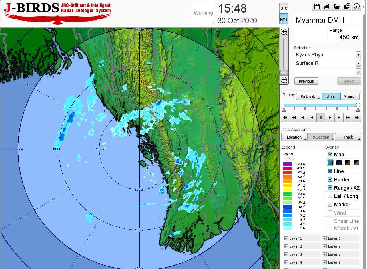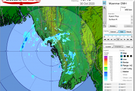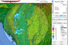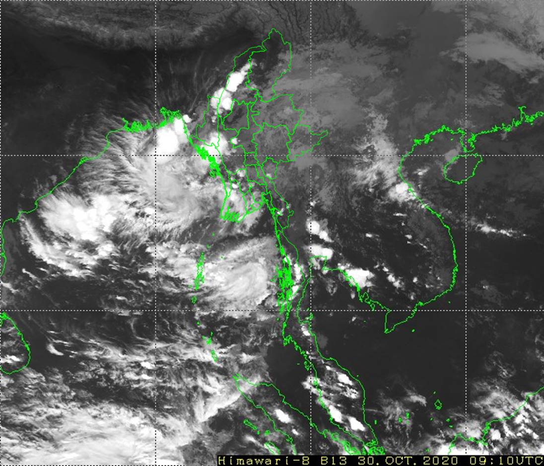 ဘင်္ဂလားပင်လယ်အော် အခြေအနေ။ ကပ္ပလီပင်လယ်ပြင်နှင့် ဘင်္ဂလားပင်လယ်အော်တို့တွင် တိမ်အသင့်အတင့်မှ တိမ်ထူထပ်နေပါသည်။