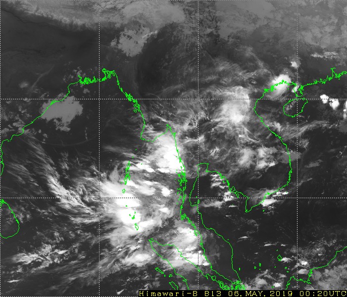 ဘင်္ဂလားပင်လယ်အော်အခြေအနေ။ ကပ္ပလီပင်လယ်ပြင်နှင့်ဘင်္ဂလားပင်လယ်အော် အရှေ့တောင်ပိုင်းတို့တွင် တိမ်ထူထပ်နေပြီး၊ ကျန်ဘင်္ဂလားပင်လယ်အော်တွင် တိမ်အနည်းငယ်မှ တိမ်အသင့်အတင့် ဖြစ်ထွန်းနေပါသည်။