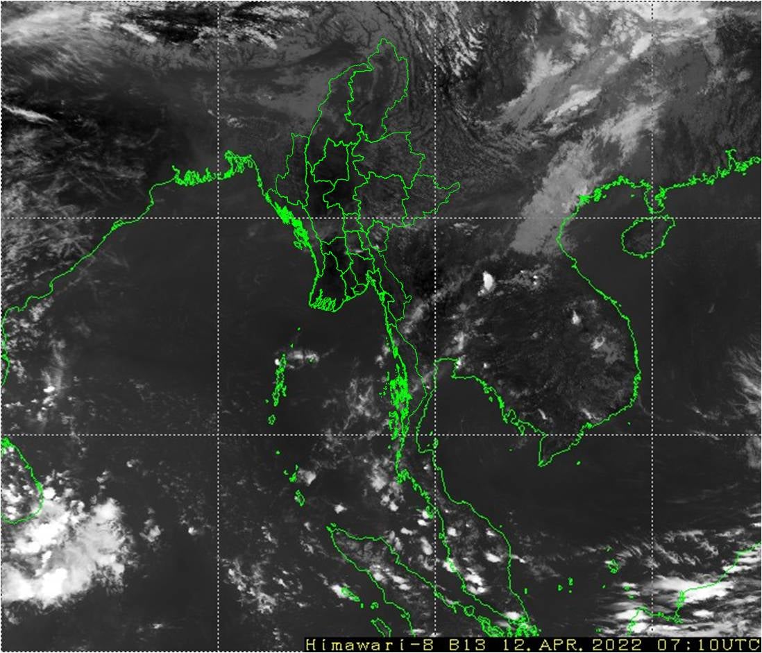 ဘင်္ဂလားပင်လယ်အော်အခြေအနေ။ ဘင်္ဂလားပင်လယ်အော် အနောက်တောင်ပိုင်းတွင် တိမ်အသင့်အတင့်မှ တိမ်ထူထပ်နေပြီး၊ ကပ္ပလီပင်လယ်ပြင်နှင့် ကျန်ဘင်္ဂလားပင်လယ်အော်တို့တွင် တိမ်အနည်းငယ် ဖြစ်ထွန်းနေပါသည်။