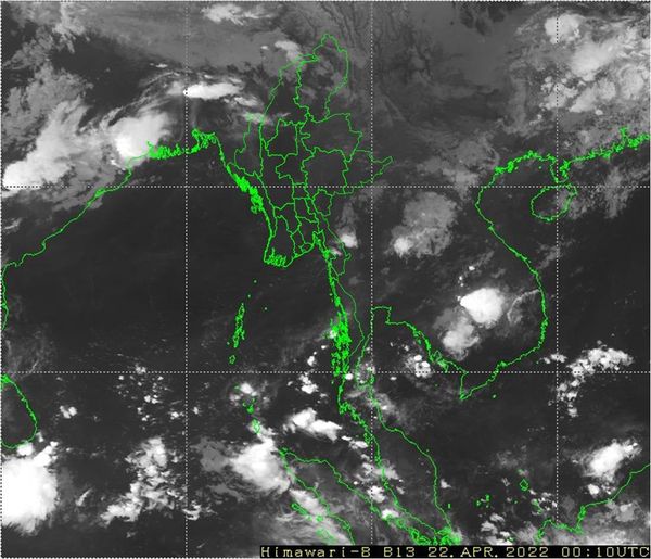 ယနေ့ညနေအထိခန့်မှန်းချက်။ စစ်ကိုင်းတိုင်းဒေသကြီးအထက်ပိုင်း၊ တနင်္သာရီတိုင်းဒေသကြီး၊ ကချင်ပြည်နယ်နှင့် ချင်းပြည်နယ်တို့တွင် နေရာကျဲကျဲနှင့် စစ်ကိုင်းတိုင်းဒေသကြီးအောက်ပိုင်း၊ မန္တလေးတိုင်းဒေသကြီး၊ မကွေးတိုင်းဒေသကြီး၊ ရှမ်းပြည်နယ်၊ ရခိုင်ပြည်နယ်၊ ကရင်ပြည်နယ်နှင့် မွန်ပြည်နယ်တို့တွင် နေရာကွက်ကျားမိုးထစ်ချုန်းရွာမည်။ ရွာရန်ရာနှုန်း(၈၀) ဖြစ်ပါသည်။ ကျန်တိုင်းဒေသကြီးနှင့် ပြည်နယ်တို့တွင် တိမ်အသင့်အတင့်ဖြစ်ထွန်းမည်။