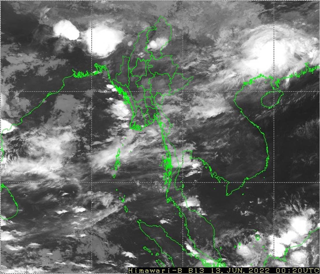 ယနေ့ညနေအထိခန့်မှန်းချက်။ စစ်ကိုင်းတိုင်းဒေသကြီးအောက်ပိုင်းနှင့် မကွေးတိုင်းဒေသကြီးတို့တွင် နေရာကျဲကျဲ၊စစ်ကိုင်းတိုင်းဒေသကြီးအထက်ပိုင်း၊ မန္တလေးတိုင်းဒေသကြီး၊ ရှမ်းပြည်နယ်(မြောက်ပိုင်းနှင့် အရှေ့ပိုင်း)၊ ချင်းပြည်နယ်နှင့် ရခိုင်ပြည်နယ်တို့တွင် နေရာစိပ်စိပ်နှင့် ကျန်တိုင်းဒေသကြီးနှင့် ပြည်နယ်တို့တွင် နေရာအနှံ့အပြားမိုးထစ်ချုန်းရွာပြီး၊ စစ်ကိုင်းတိုင်းဒေသကြီးအထက်ပိုင်း၊ ဧရာဝတီတိုင်းဒေသကြီး၊ ကချင်ပြည်နယ်နှင့် ရခိုင်ပြည်နယ်တို့တွင် နေရာကွက်၍ မိုးကြီးနိုင်ပါသည်။ ရွာရန်ရာနှုန်းပြည့် ဖြစ်ပါသည်။