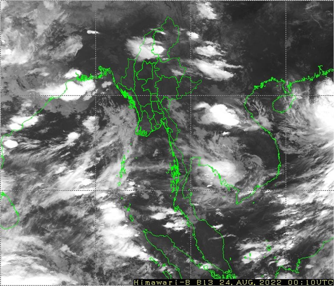 ယနေ့ညနေအထိ ခန့်မှန်းချက်။ စစ်ကိုင်းတိုင်းဒေသကြီး အထက်ပိုင်းနှင့် ကချင်ပြည်နယ်တို့တွင် နေရာအနှံ့အပြား၊ ရန်ကုန်တိုင်းဒေသကြီး၊ ဧရာဝတီတိုင်းဒေသကြီး၊ တနင်္သာရီတိုင်းဒေသကြီး၊ ချင်းပြည်နယ်၊ ရခိုင်ပြည်နယ်၊ ကရင်ပြည်နယ်နှင့် မွန်ပြည်နယ်တို့တွင် နေရာစိပ်စိပ်၊ ပဲခူးတိုင်းဒေသကြီး၊ ရှမ်းပြည်နယ်နှင့် ကယားပြည်နယ်တို့တွင် နေရာကျဲကျဲနှင့် ကျန်တိုင်းဒေသကြီးနှင့် ပြည်နယ်တို့တွင် နေရာကွက်ကျားမိုးထစ်ချုန်းရွာမည်။ ရွာရန်ရာနှုန်းပြည့်ဖြစ်ပါသည်။