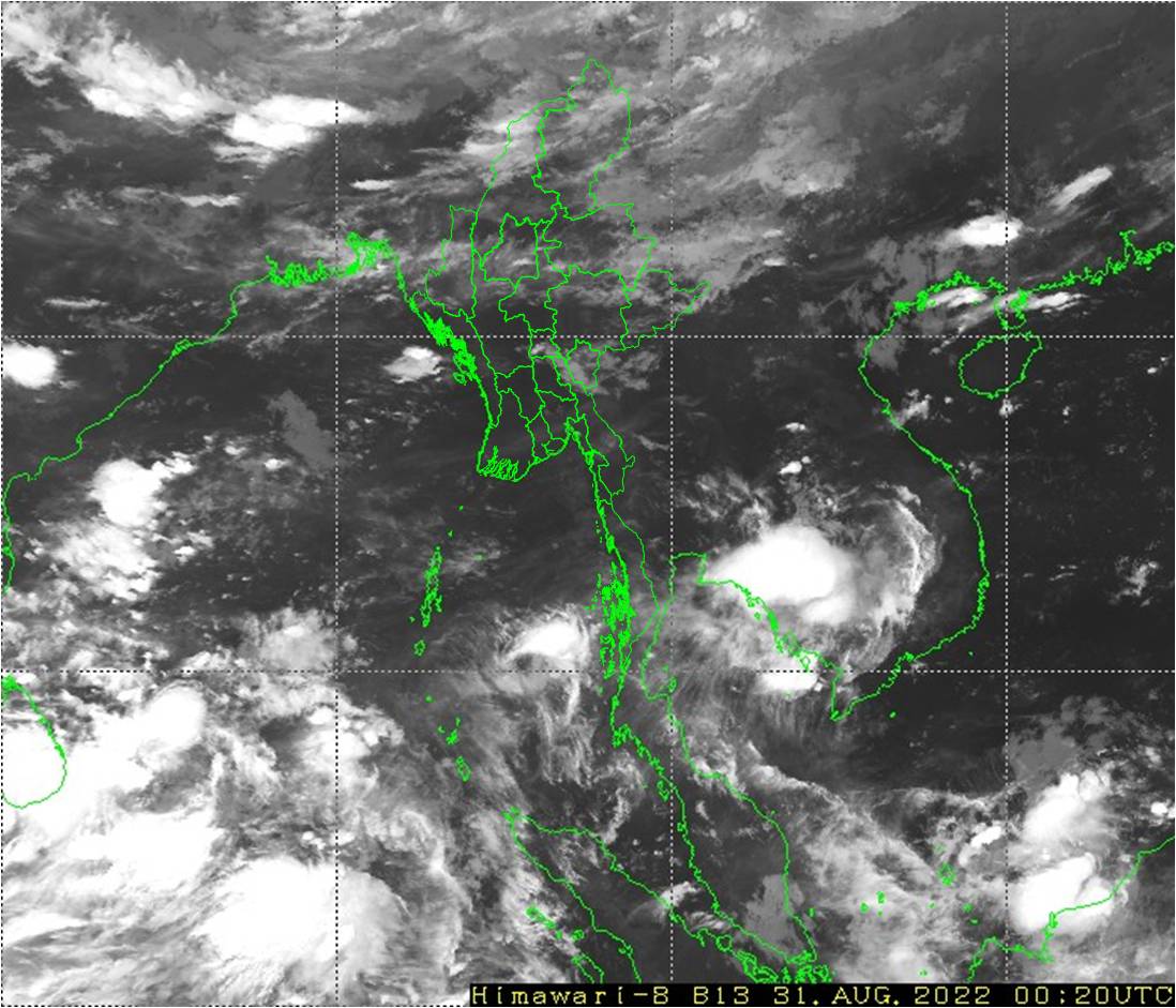 ယနေ့ညနေအထိခန့်မှန်းချက်။စစ်ကိုင်းတိုင်းဒေသကြီးအထက်ပိုင်းနှင့် ကချင်ပြည်နယ်တို့တွင် နေရာစိပ်စိပ်၊ စစ်ကိုင်းတိုင်းဒေသကြီးအောက်ပိုင်း၊ မန္တလေးတိုင်းဒေသကြီး၊ တနင်္သာရီတိုင်းဒေသကြီး၊ ရှမ်းပြည်နယ်၊ ချင်းပြည်နယ်၊ ကယားပြည်နယ်၊ ကရင်ပြည်နယ်နှင့် မွန်ပြည်နယ်တို့တွင် နေရာကျဲကျဲနှင့် ကျန်တိုင်းဒေသကြီးနှင့် ပြည်နယ်တို့တွင် နေရာကွက်ကျားမိုးထစ်ချုန်းရွာမည်။ ရွာရန်ရာနှုန်းပြည့် ဖြစ်ပါသည်။