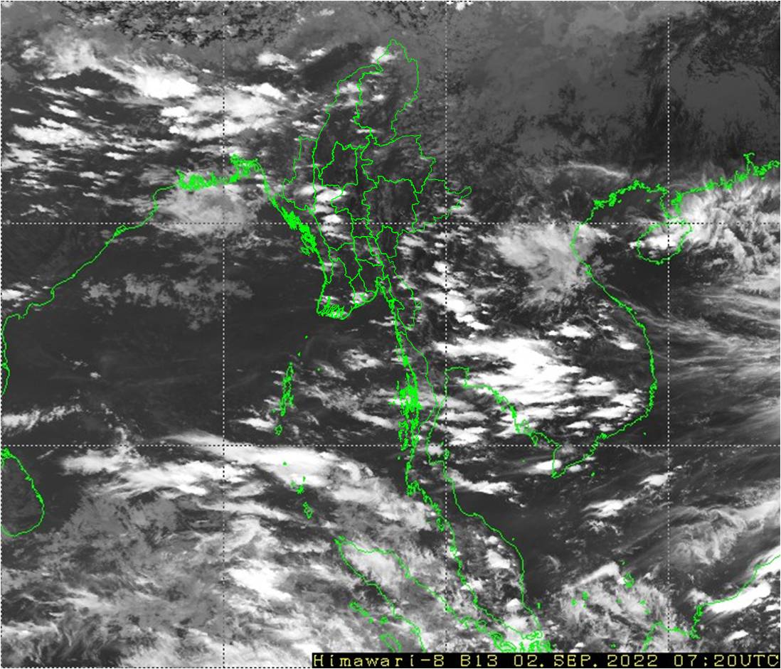 ယနေ့နံနက်(၀၉:၃၀)နာရီအချိန်ထိ မိုးလေဝသတိုင်းထွာချက်အကျဉ်းချုပ်။ လွန်ခဲ့သော(၂၄)နာရီအတွင်းက ဧရာဝတီတိုင်းဒေသကြီးတွင် တိမ်အသင့်အတင့် ဖြစ်ထွန်းခဲ့ပြီး၊ နေပြည်တော်၊ မကွေးတိုင်းဒေသကြီး၊ ပဲခူးတိုင်းဒေသကြီး၊ ရန်ကုန်တိုင်းဒေသကြီး၊ ရှမ်းပြည်နယ်(အရှေ့ပိုင်း)၊ ကရင်ပြည်နယ်နှင့် မွန်ပြည်နယ်တို့တွင် နေရာကွက်ကျား၊ စစ်ကိုင်းတိုင်းဒေသကြီးအထက်ပိုင်း၊ မန္တလေးတိုင်းဒေသကြီး၊ ကချင်ပြည်နယ်၊ ချင်းပြည်နယ်နှင့် ကယားပြည်နယ်တို့တွင် နေရာကျဲကျဲ၊ တနင်္သာရီတိုင်းဒေသကြီး၊ ရှမ်းပြည်နယ်(မြောက်ပိုင်း)နှင့် ရခိုင်ပြည်နယ်တို့တွင် နေရာစိပ်စိပ်နှင့် ကျန်တိုင်းဒေသကြီးနှင့် ပြည်နယ်တို့တွင် နေရာအနှံ့အပြား မိုးထစ်ချုန်းရွာခဲ့ပြီး၊ စစ်ကိုင်းတိုင်းဒေသကြီးအောက်ပိုင်းတွင် နေရာကွက်၍ မိုးကြီးခဲ့ပါသည်။ မှတ်သားဖွယ်ရာ မိုးရေချိန်များမှာ ဟုမ္မလင်းမြို့တွင် (၂.၂၉)လက်မ၊ မိုးမိတ်မြို့တွင် (၁.၉၃)လက်မ၊ မုံရွာမြို့တွင် (၁.၇၆)လက်မ၊ ပုဏ္ဏားကျွန်းမြို့တွင် (၁.၄၀)လက်မ၊ မင်းပြားမြို့တွင် (၁.၂၈)လက်မ၊ စစ်တွေမြို့တွင် (၁.၁၄)လက်မ၊ တောင်သာမြို့တွင် (၁.၀၂)လက်မ၊ ရန်ကုန်(မင်္ဂလာဒုံမြို့နယ်)တွင် (၀.၉၄)လက်မနှင့် ရန်ကုန်(မရမ်းကုန်းမြို့နယ်)တွင် (၀.၉၀)လက်မတို့ ဖြစ်ကြပါသည်။