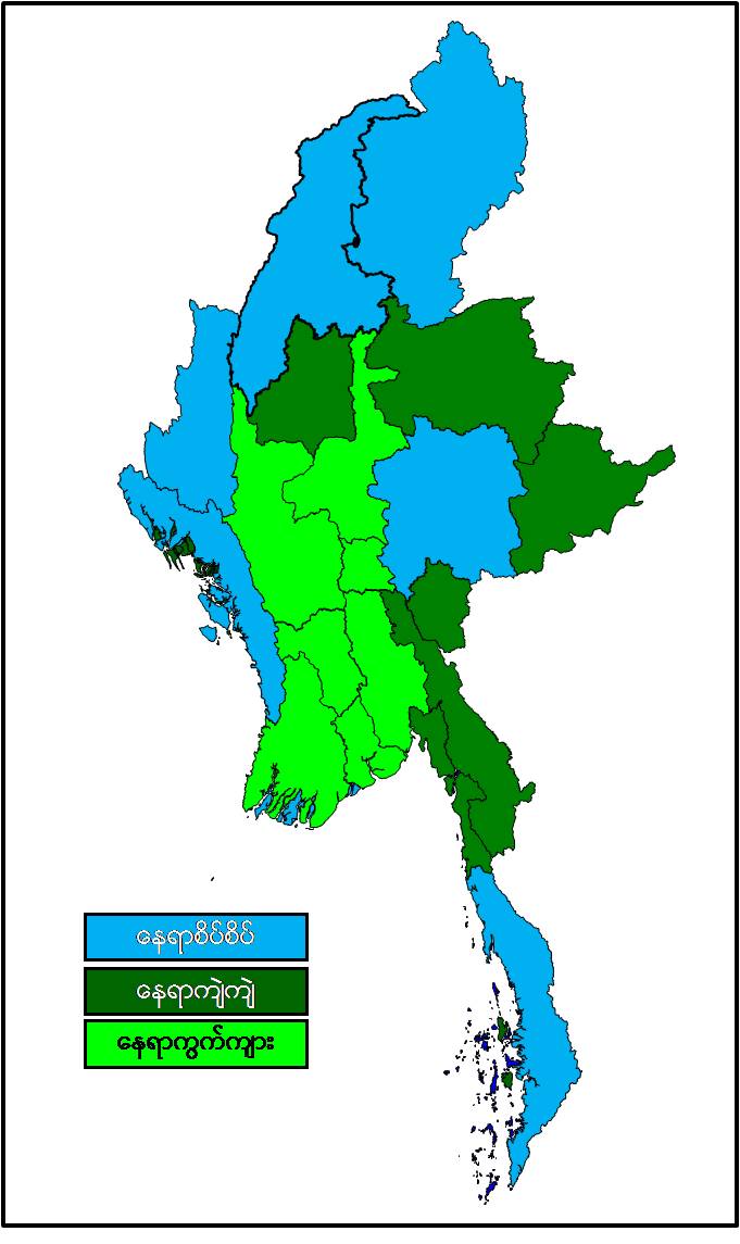 မနက်ဖြန်နံနက်အထိခန့်မှန်းချက်။ စစ်ကိုင်းတိုင်းဒေသကြီးအထက်ပိုင်း၊ တနင်္သာရီတိုင်းဒေသကြီး၊ ကချင်ပြည်နယ်၊ ရှမ်းပြည်နယ်(တောင်ပိုင်း)၊ချင်းပြည်နယ်နှင့် ရခိုင်ပြည်နယ်တို့တွင် နေရာစိပ်စိပ်၊ စစ်ကိုင်းတိုင်းဒေသကြီးအောက်ပိုင်း၊ ရှမ်းပြည်နယ်(မြောက်ပိုင်းနှင့် အရှေ့ပိုင်း)၊ ကယားပြည်နယ်၊ ကရင်ပြည်နယ်နှင့် မွန်ပြည်နယ်တို့တွင် နေရာကျဲကျဲနှင့် ကျန်တိုင်းဒေသကြီးနှင့် ပြည်နယ်တို့တွင် နေရာကွက်ကျားမိုးထစ်ချုန်းရွာမည်။ ရွာရန်ရာနှုန်း(၈၀) ဖြစ်ပါသည်။