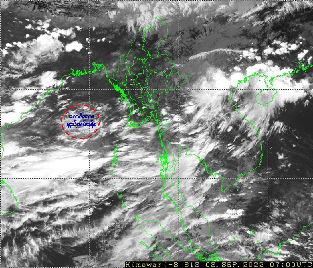 ဘင်္ဂလားပင်လယ်အော်အခြေအနေ။ ယနေ့မြန်မာစံတော်ချိန် (၁၃:၃၀)နာရီအချိန် တိုင်းထွာချက်များအရ ဘင်္ဂလားပင်လယ်အော် အနောက်အလယ်ပိုင်းနှင့် ယင်းနှင့်ဆက်စပ်လျက်ရှိသော ဘင်္ဂလားပင်လယ်အော် အရှေ့အလယ်ပိုင်းတို့တွင် လေဖိအားနည်းရပ်ဝန်း(Low Pressure Area)တစ်ခုဖြစ်ပေါ်နေပါသည်။ အဆိုပါ လေဖိအားနည်းရပ်ဝန်း(Low Pressure Area)သည် နောက်(၄၈)နာရီအတွင်း ဘင်္ဂလားပင်လယ်အော်အနောက်အလယ်ပိုင်းနှင့် ယင်းနှင့်ဆက်စပ်လျက်ရှိသော ဘင်္ဂလားပင်လယ်အော်အနောက်မြောက်ပိုင်း (အိန္ဒိယနိုင်ငံ၊ အင်ဒရာပရာဒေ့ရှ်မြောက်ပိုင်းကမ်းလွန်နှင့် ဩရိဿပြည်နယ်တောင်ပိုင်းကမ်းခြေ)တို့တွင် အားကောင်းသော လေဖိအားနည်းရပ်ဝန်း(Well Marked Low Pressure Area)အဖြစ်သို့ ရောက်ရှိနိုင်သည်ဟု ခန့်မှန်းရပါသည်။ ကပ္ပလီပင်လယ်ပြင်နှင့် ဘင်္ဂလားပင်လယ်အော်တောင်ပိုင်းတို့တွင် မုတ်သုံလေအားကောင်းနေပြီး၊ ကျန်ဘင်္ဂလားပင်လယ်အော်တွင် မုတ်သုံလေအားအသင့်အတင့် ရှိနေပါသည်။