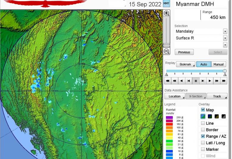 မနက်ဖြန်နံနက်အထိ ခန့်မှန်းချက်။ နေပြည်တော်၊ စစ်ကိုင်းတိုင်းဒေသကြီးအောက်ပိုင်း၊ မန္တလေးတိုင်းဒေသကြီးနှင့် မကွေးတိုင်းဒေသကြီးတို့တွင် နေရာကွက်ကျား၊ ချင်းပြည်နယ်နှင့် ကယားပြည်နယ်တို့တွင် နေရာကျဲကျဲ၊ စစ်ကိုင်းတိုင်းဒေသကြီးအထက်ပိုင်း၊ ပဲခူးတိုင်းဒေသကြီး၊ ရန်ကုန်တိုင်းဒေသကြီး၊ ဧရာဝတီတိုင်းဒေသကြီးနှင့် ရှမ်းပြည်နယ်တို့တွင် နေရာစိပ်စိပ်နှင့် ကျန်တိုင်းဒေသကြီးနှင့် ပြည်နယ်တို့တွင် နေရာအနှံ့အပြားမိုးထစ်ချုန်းရွာပြီး၊ စစ်ကိုင်းတိုင်းဒေသကြီးအထက်ပိုင်း၊တနင်္သာရီတိုင်းဒေသကြီး၊ ကချင်ပြည်နယ်၊ ရှမ်းပြည်နယ်(တောင် ပိုင်း)၊ ကရင်ပြည်နယ်နှင့် မွန်ပြည်နယ်တို့တွင် နေရာကွက်၍ မိုးကြီးနိုင်ပါသည်။ ရွာရန်ရာနှုန်းပြည့် ဖြစ်ပါသည်။