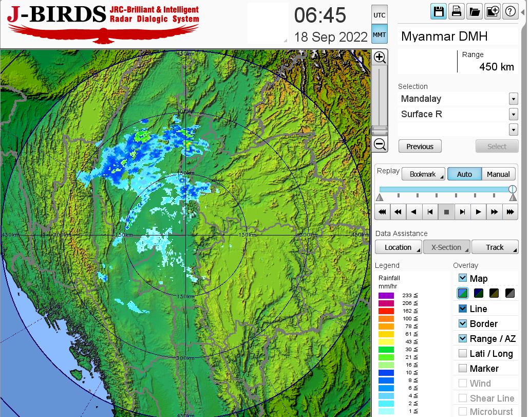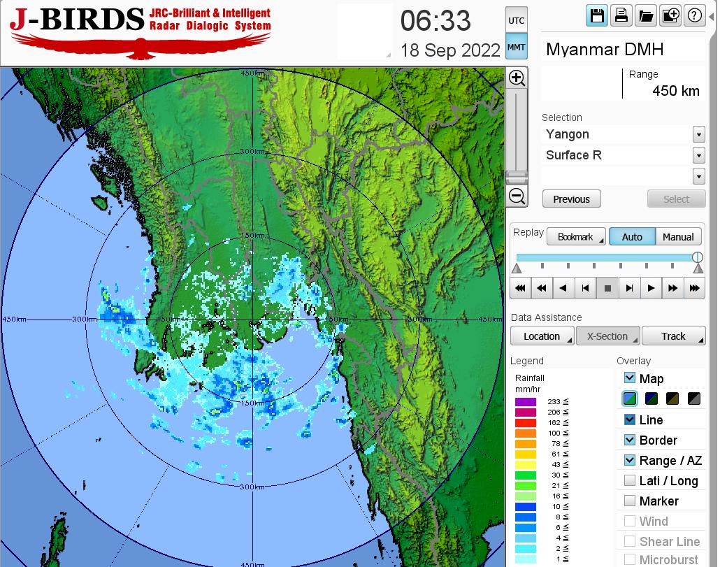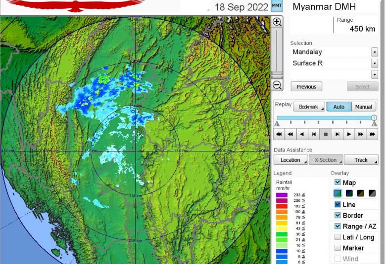 ယနေ့ညနေအထိ ခန့်မှန်းချက်။ နေပြည်တော်၊ မကွေးတိုင်းဒေသကြီး၊ ကချင်ပြည်နယ်၊ ရှမ်းပြည်နယ်(မြောက်ပိုင်းနှင့် အရှေ့ပိုင်း)နှင့် ကယားပြည်နယ်တို့တွင် နေရာကျဲကျဲ၊ စစ်ကိုင်းတိုင်းဒေသကြီး၊ မန္တလေးတိုင်းဒေသကြီး၊ ပဲခူးတိုင်းဒေသကြီးနှင့် ရခိုင်ပြည်နယ်တို့တွင် နေရာစိပ်စိပ်နှင့် ကျန်တိုင်းဒေသကြီးနှင့် ပြည်နယ်တို့တွင် နေရာအနှံ့အပြားမိုးထစ်ချုန်းရွာပြီး၊ စစ်ကိုင်းတိုင်းဒေသကြီးအောက်ပိုင်း၊ ဧရာဝတီတိုင်းဒေသကြီးနှင့် ရခိုင်ပြည်နယ်တို့တွင်နေရာကွက်၍ မိုးကြီးနိုင်ပါသည်။ရွာရန်ရာနှုန်းပြည့် ဖြစ်ပါသည်။