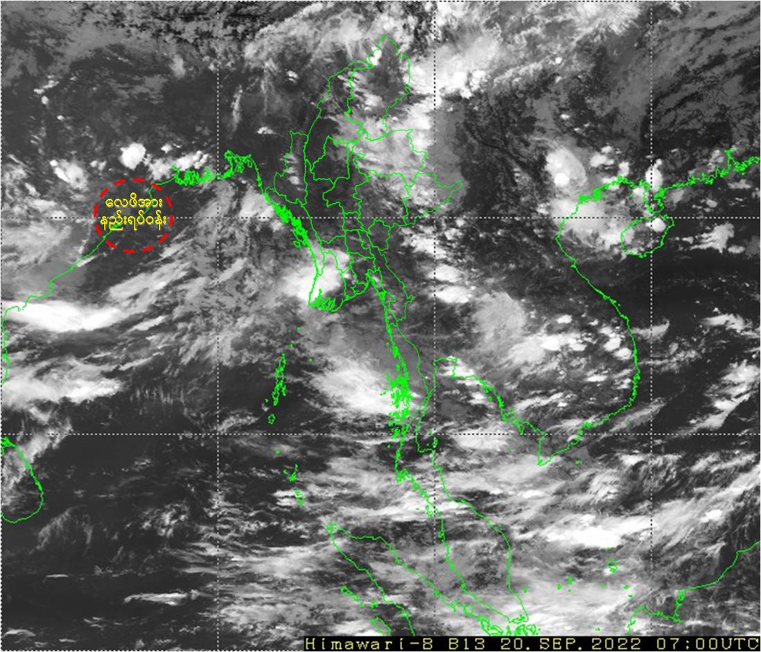 ဘင်္ဂလားပင်လယ်အော်အခြေအနေ။ ယနေ့မြန်မာစံတော်ချိန် (၁၃:၃၀)နာရီအချိန် တိုင်းထွာချက်များအရ ဘင်္ဂလားပင်လယ်အော်အနောက်မြောက်ပိုင်းနှင့် ယင်းနှင့်ဆက်စပ်လျက်ရှိသော အိန္ဒိယနိုင်ငံ၊ ဩရိဿပြည်နယ်ကမ်းလွန်တို့တွင် ဖြစ်ပေါ်နေသော လေဖိအားနည်းရပ်ဝန်း (Low Pressure Area)သည် ဘင်္ဂလားပင်လယ်အော်အနောက်မြောက်ပိုင်းနှင့် ယင်းနှင့်ဆက်စပ်လျက်ရှိသော အိန္ဒိယနိုင်ငံ၊ ဩရိဿပြည်နယ်မြောက်ပိုင်း -အနောက်ဘင်္ဂလားပြည်နယ်ကမ်းခြေတို့တွင် ဆက်လက်တည်ရှိနေပါသည်။ အဆိုပါ လေဖိအားနည်းရပ်ဝန်း(Low Pressure Area)သည် အနောက်-အနောက်မြောက်ဘက်သို့ ရွေ့လျားပြီး၊ နောက်(၂)ရက်အတွင်း အိန္ဒိယနိုင်ငံ၊ ဩရိဿပြည်နယ်မြောက်ပိုင်းနှင့် ချက်တစ်ဂတ်ပြည်နယ်မြောက်ပိုင်းတို့မှ ဖြတ်ကျော်နိုင်သည်ဟု ခန့်မှန်းရပါသည်။ ကပ္ပလီပင်လယ်ပြင်နှင့် ဘင်္ဂလားပင်လယ်အော်တောင်ပိုင်းတို့တွင် မုတ်သုံလေအားနည်းနေပြီး၊ ကျန်ဘင်္ဂလားပင်လယ်အော်တွင် မုတ်သုံလေအားအသင့်အတင့် ရှိနေပါသည်။