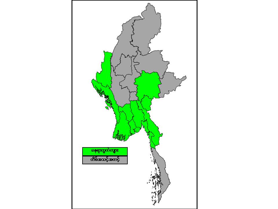မနက်ဖြန်နံနက်အထိ ခန့်မှန်းချက်။ ပဲခူးတိုင်းဒေသကြီး၊ ရန်ကုန်တိုင်းဒေသကြီး၊ ဧရာဝတီတိုင်းဒေသကြီး၊ ရှမ်းပြည်နယ်(တောင်ပိုင်း)၊ ချင်းပြည်နယ်၊ ရခိုင်ပြည်နယ်၊ ကယားပြည်နယ်၊ ကရင်ပြည်နယ်နှင့် မွန်ပြည်နယ်တို့တွင် နေရာကွက်ကျားမိုးထစ်ချုန်းရွာမည်။ ရွာရန်ရာနှုန်း(၈၀) ဖြစ်ပါသည်။ ကျန်တိုင်းဒေသကြီးနှင့် ပြည်နယ်တို့တွင် တိမ်အသင့်အတင့် ဖြစ်ထွန်းမည်။