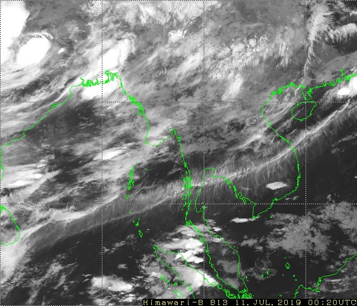 ကပ္ပလီပင်လယ်ပြင်တွင် မုတ်သုံလေ အားအသင့်အတင့် ရှိနေပြီး၊ ဘင်္ဂလားပင်လယ်အော်တွင် မုတ်သုံလေ အားကောင်းနေပါသည်။