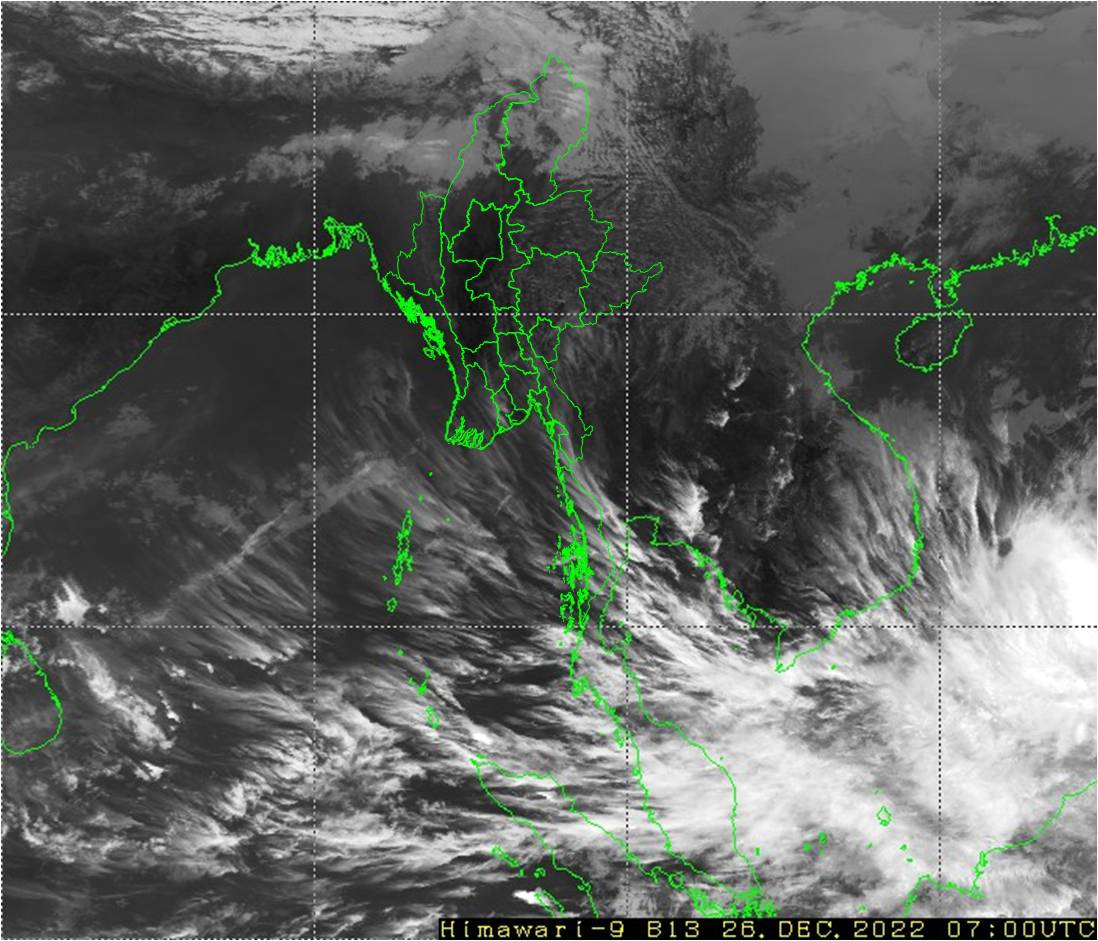 ဘင်္ဂလားပင်လယ်အော်အခြေအနေ။ ဘင်္ဂလားပင်လယ်အော်မြောက်ပိုင်းတွင် အများအားဖြင့် သာယာနေပြီး၊ကပ္ပလီပင်လယ်ပြင်နှင့် ကျန်ဘင်္ဂလားပင်လယ်အော်တို့တွင် တိမ်အသင့်အတင့် ဖြစ်ထွန်းနေပါသည်။