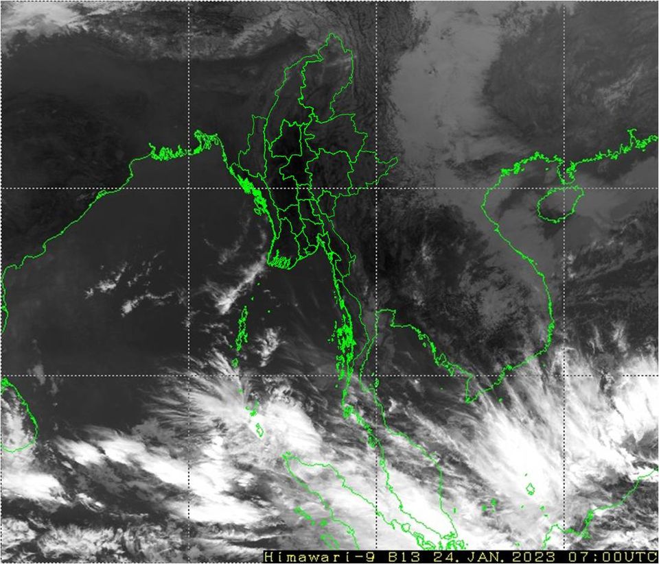 ယနေ့နံနက်(၀၉:၃၀)နာရီအချိန်ထိမိုးလေဝသတိုင်းထွာချက်အကျဉ်းချုပ်။ လွန်ခဲ့သော(၂၄)နာရီအတွင်းက ဧရာဝတီတိုင်းဒေသကြီး၊ တနင်္သာရီတိုင်းဒေသကြီး၊ ကချင်ပြည်နယ်၊ ကရင်ပြည်နယ်နှင့် မွန်ပြည်နယ်တို့တွင် တိမ်အသင့်အတင့် ဖြစ်ထွန်းခဲ့ပြီး၊ ကျန်တိုင်းဒေသကြီးနှင့် ပြည်နယ်တို့တွင် အများအားဖြင့် သာယာခဲ့ပါသည်။ ညအပူချိန်များမှာရှမ်းပြည်နယ်(အရှေ့ပိုင်း)တွင် ဇန်နဝါရီလ၏ပျမ်းမျှအပူချိန်အောက် (၅)ဒီဂရီစင်တီဂရိတ်၊ ရန်ကုန်တိုင်းဒေသကြီး၊ တနင်္သာရီတိုင်းဒေသကြီးနှင့် ရှမ်းပြည်နယ်(မြောက်ပိုင်း)တို့တွင် ဇန်နဝါရီလ၏ပျမ်းမျှအပူချိန်တို့အောက်(၃)ဒီဂရီစင်တီဂရိတ်နှင့် ပဲခူးတိုင်းဒေသကြီးနှင့် ကရင်ပြည်နယ်တို့တွင် ဇန်နဝါရီလ၏ပျမ်းမျှအပူချိန်တို့အောက် (၂)ဒီဂရီစင်တီဂရိတ်လျော့နည်းခဲ့ပြီး၊ ကျန်တိုင်းဒေသကြီးနှင့် ပြည်နယ်တို့တွင်ဇန်နဝါရီလ၏ပျမ်းမျှအပူချိန်ခန့်သာရှိခဲ့ပါသည်။ ထူးခြားသည့် ညအပူချိန်များမှာနမ့်စန်မြို့၊ မိုင်းယန်းမြို့နှင့် ဟားခါးမြို့တို့တွင် (၀)ဒီဂရီစင်တီဂရိတ်စီ၊ ဟဲဟိုးမြို့တွင် (၁)ဒီဂရီစင်တီဂရိတ်၊ လွိုင်လင်မြို့တွင် (၂)ဒီဂရီစင်တီဂရိတ်နှင့် ကျောက်မဲမြို့တွင် (၃)ဒီဂရီစင်တီဂရိတ်တို့ ဖြစ်ကြပါသည်။