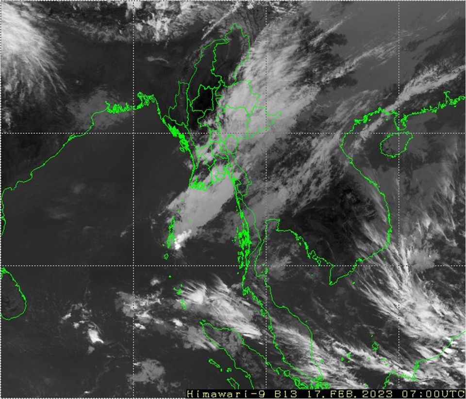 ဘင်္ဂလားပင်လယ်အော်အခြေအနေ။ ကပ္ပလီပင်လယ်ပြင်နှင့် ဘင်္ဂလားပင်လယ်အော်တောင်ပိုင်းတို့တွင် တိမ်အသင့်အတင့် ဖြစ်ထွန်းနေပြီး၊ ကျန်ဘင်္ဂလားပင်လယ်အော် တွင် တိမ်အနည်းငယ် ဖြစ်ထွန်းနေပါသည်။