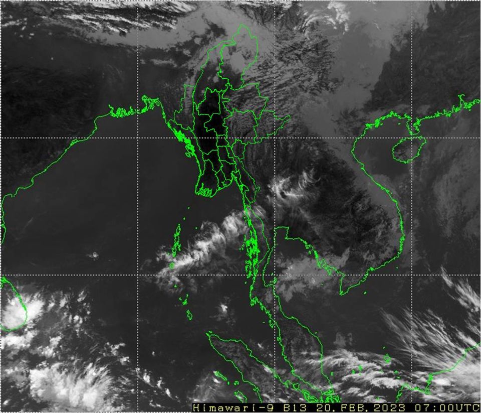 ယနေ့နံနက်(၀၉:၃၀)နာရီအချိန်ထိ မိုးလေဝသတိုင်းထွာချက်အကျဉ်းချုပ်။ လွန်ခဲ့သော(၂၄)နာရီအတွင်းက စစ်ကိုင်းတိုင်းဒေသကြီးအထက်ပိုင်းနှင့် ကချင်ပြည်နယ်တို့တွင် နေရာကွက်ကျား မိုးအနည်းငယ် ထစ်ချုန်းရွာခဲ့ပါသည်။ စစ်ကိုင်းတိုင်းဒေသကြီးအောက်ပိုင်း၊ မန္တလေးတိုင်းဒေသကြီး၊ ရန်ကုန် တိုင်းဒေသကြီး၊ တနင်္သာရီတိုင်းဒေသကြီး၊ ရှမ်းပြည်နယ်၊ ချင်းပြည်နယ်၊ ကရင်ပြည်နယ်နှင့် မွန်ပြည်နယ်တို့တွင် တိမ်အသင့်အတင့် ဖြစ်ထွန်းခဲ့ပြီး၊ ကျန်တိုင်းဒေသကြီးနှင့် ပြည်နယ်တို့တွင် အများအားဖြင့် သာယာခဲ့ပါသည်။ ညအပူချိန်များမှာ မကွေးတိုင်းဒေသကြီး၊ ရန်ကုန်တိုင်းဒေသကြီး၊ ချင်း ပြည်နယ်နှင့် ရခိုင်ပြည်နယ်တို့တွင် ဖေဖော်ဝါရီလ၏ ပျမ်းမျှအပူချိန်တို့အောက် (၂)ဒီဂရီစင်တီဂရိတ်လျော့နည်းခဲ့ပြီး၊ နေပြည်တော်နှင့် ကယား ပြည်နယ်တို့တွင် ဖေဖော်ဝါရီလ၏ ပျမ်းမျှအပူချိန်တို့ထက် (၂)ဒီဂရီစင်တီဂရိတ်နှင့် စစ်ကိုင်းတိုင်းဒေသကြီးအထက်ပိုင်းနှင့် ကချင်ပြည်နယ်တို့တွင် ဖေဖော်ဝါရီလ၏ ပျမ်းမျှအပူချိန်တို့ထက် (၃)ဒီဂရီစင်တီဂရိတ် ပိုခဲ့ကာ၊ ကျန်တိုင်းဒေသကြီးနှင့် ပြည်နယ်တို့တွင် ဖေဖော်ဝါရီလ၏ ပျမ်းမျှအပူချိန် ခန့်သာ ရှိခဲ့ပါသည်။ ထူးခြားသည့် ညအပူချိန်များမှာ ဟားခါးမြို့တွင် (၁)ဒီဂရီစင်တီဂရိတ်၊ နမ့်စန်မြို့တွင် (၄)ဒီဂရီစင်တီဂရိတ်၊ ဟဲဟိုးမြို့တွင် (၅)ဒီဂရီ စင်တီဂရိတ်၊ မိုင်းယန်းမြို့တွင် (၆)ဒီဂရီစင်တီဂရိတ်နှင့် လွိုင်လင်မြို့တွင် (၇)ဒီဂရီစင်တီဂရိတ်တို့ ဖြစ်ကြပါသည်။