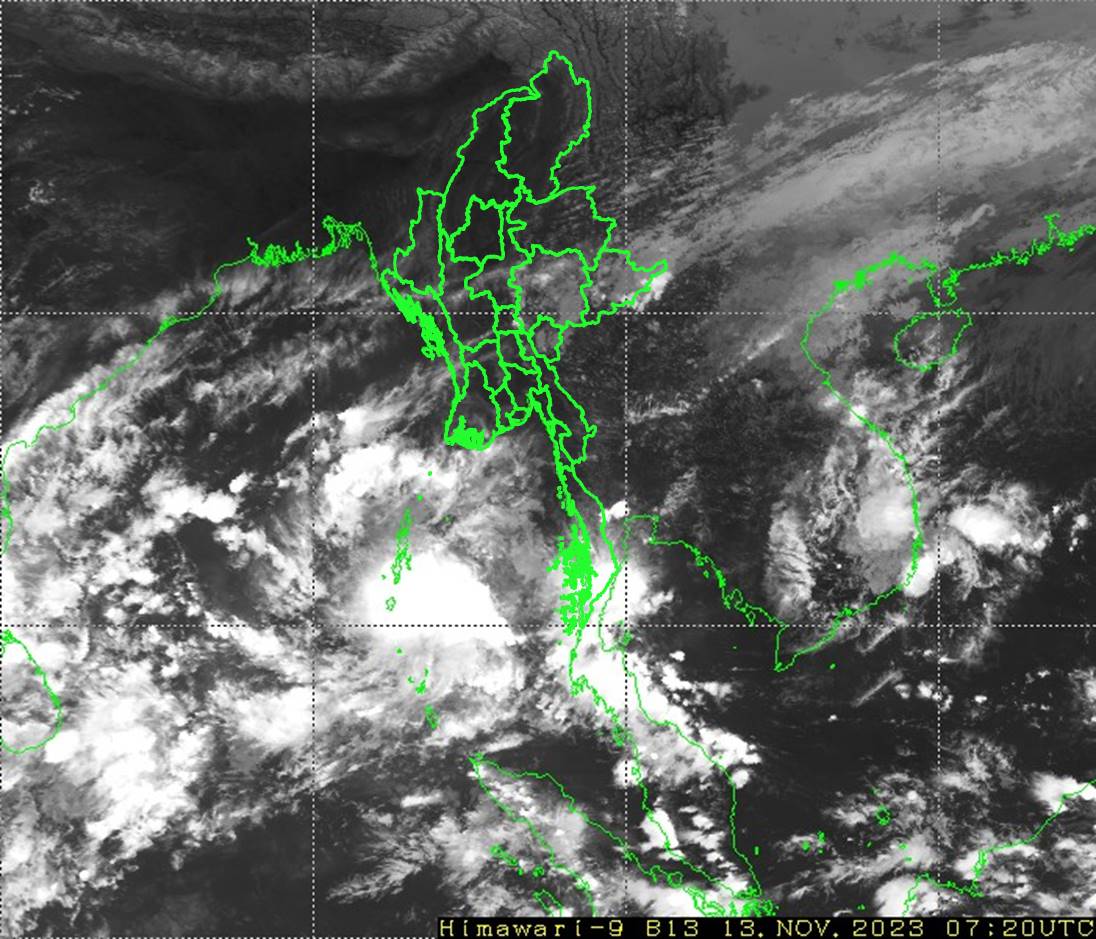 ဘင်္ဂလားပင်လယ်အော်အခြေအနေ။ ကပ္ပလီပင်လယ်ပြင်နှင့် ဘင်္ဂလားပင်လယ်အော်တို့တွင် တိမ်အသင့်အတင့်မှ တိမ်ထူထပ်နေပါသည်။