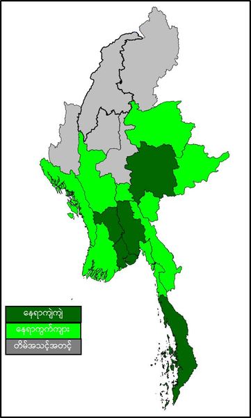 မနက်ဖြန်နံနက်အထိခန့်မှန်းချက်။ ပဲခူးတိုင်းဒေသကြီး၊ ရန်ကုန်တိုင်းဒေသကြီး၊ ဧရာဝတီတိုင်းဒေသကြီး၊ တနင်္သာရီတိုင်းဒေသကြီးနှင့် ရှမ်းပြည်နယ်(တောင် ပိုင်း)တို့တွင် နေရာကျဲကျဲနှင့် နေပြည်တော်၊ မကွေးတိုင်းဒေသကြီး၊ ရှမ်းပြည်နယ်(မြောက်ပိုင်းနှင့် အရှေ့ပိုင်း)၊ ရခိုင်ပြည်နယ်၊ ကယားပြည်နယ်၊ ကရင်ပြည်နယ် နှင့် မွန်ပြည်နယ်တို့တွင် နေရာကွက်ကျား မိုးထစ်ချုန်းရွာမည်။ ရွာရန်ရာနှုန်း(၈၀) ဖြစ်ပါသည်။ ကျန်တိုင်းဒေသကြီးနှင့် ပြည်နယ်တို့တွင် တိမ်အသင့်အတင့် ဖြစ်ထွန်းမည်။