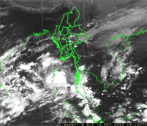 ဘင်္ဂလားပင်လယ်အော်အခြေအနေ။ ကပ္ပလီပင်လယ်ပြင်နှင့် ဘင်္ဂလားပင်လယ်အော်တို့တွင် တိမ်အသင့်အတင့် မှ တိမ်ထူထပ်နေပါသည်။