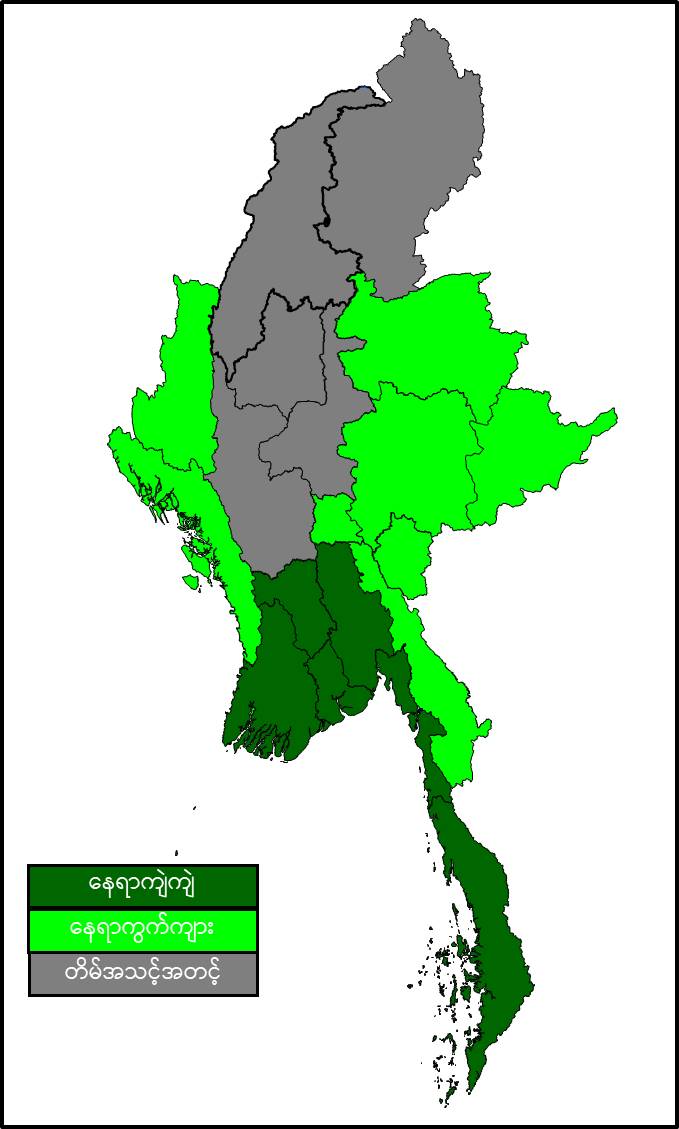 မနက်ဖြန်နံနက်အထိခန့်မှန်းချက်။ စစ်ကိုင်းတိုင်းဒေသကြီး၊ မန္တလေးတိုင်းဒေသကြီး၊ မကွေးတိုင်းဒေသကြီးနှင့် ကချင်ပြည်နယ်တို့တွင် တိမ်အသင့်အတင့် ဖြစ်ထွန်းမည်။ ပဲခူးတိုင်းဒေသကြီး၊ ရန်ကုန်တိုင်းဒေသကြီး၊ ဧရာဝတီတိုင်းဒေသကြီး၊ တနင်္သာရီတိုင်းဒေသကြီးနှင့် မွန်ပြည်နယ်တို့တွင် နေရာကျဲကျဲနှင့် ကျန် တိုင်းဒေသကြီးနှင့် ပြည်နယ်တို့တွင် နေရာကွက်ကျား မိုးထစ်ချုန်းရွာမည်။ ရွာရန်ရာနှုန်း(၈၀) ဖြစ်ပါသည်။