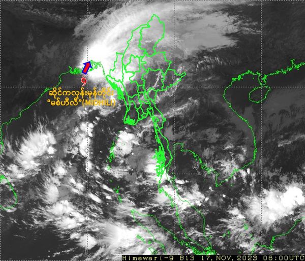 ဘင်္ဂလားပင်လယ်အော်အခြေအနေ။ ယနေ့မြန်မာစံတော်ချိန် (၁၂:၃၀)နာရီအချိန် တိုင်းထွာချက်များအရ ဘင်္ဂလား ပင်လယ်အော်အနောက်မြောက်ပိုင်းတွင် ဖြစ်ပေါ်နေသော ဆိုင်ကလုန်းမုန်တိုင်း(Cyclonic Storm) “မစ်ဟီလီ”(MIDHILI) သည် မြောက်-အရှေ့မြောက်ဘက်သို့ ရွေ့လျားခဲ့ပြီး၊ ဘင်္ဂလားပင်လယ်အော်အနောက်မြောက်ပိုင်းနှင့် ယင်းနှင့် ဆက်စပ် လျက်ရှိသော ဘင်္ဂလားပင်လယ်အော်အရှေ့မြောက်ပိုင်းသို့ရောက်ရှိခဲ့ကာ၊ မြန်မာနိုင်ငံ၊ စစ်တွေမြို့(Sittwe)၏ အနောက်- အနောက်မြောက်ဘက် ရေမိုင် (၂၂၀)မိုင်ခန့်၊ မောင်တောမြို့ (Maungdaw)၏ အနောက်ဘက် ရေမိုင် (၁၈၅)မိုင်ခန့်၊ အိန္ဒိယနိုင်ငံ၊ ပါရာဒစ်မြို့(Paradip)၏ အရှေ့-အရှေ့မြောက်ဘက် ရေမိုင် (၁၄၅)မိုင်ခန့်၊ ဒီဂါမြို့(Digha)၏ အရှေ့-အရှေ့ တောင်ဘက် ရေမိုင် (၁၀၀)မိုင်ခန့်နှင့် ဘင်္ဂလားဒေ့ရှ်နိုင်ငံ၊ ခီပူပါရာမြို့(Khepupara)၏ အနောက်တောင်ဘက် ရေမိုင် (၉၀)မိုင်ခန့်အကွာ ပင်လယ်ပြင်ကို ဗဟိုပြုနေပါသည်။ ဘင်္ဂလားပင်လယ်အော်မြောက်ပိုင်းတွင် တိမ်ထူထပ်နေပြီး၊ ကပ္ပလီ ပင်လယ်ပြင်နှင့် ကျန်ဘင်္ဂလားပင်လယ်အော်တို့တွင် တိမ်အသင့်အတင့်မှ တိမ်ထူထပ်နေပါသည်။