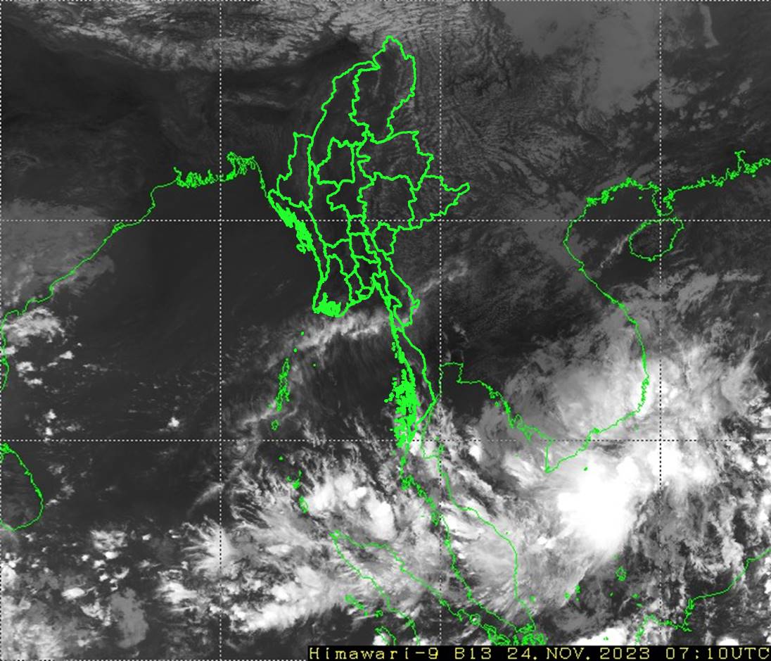 ယနေ့နံနက်(၀၉:၃၀)နာရီအချိန်ထိမိုးလေဝသတိုင်းထွာချက်အကျဉ်းချုပ်။ လွန်ခဲ့သော(၂၄)နာရီအတွင်းက ဧရာဝတိုင်းဒေသကြီး၊ ရှမ်းပြည်နယ် (မြောက်ပိုင်းနှင့် တောင်ပိုင်း)တို့တွင် နေရာကွက်ကျား မိုးထစ်ချုန်းရွာခဲ့ပြီး၊ ကျန်တိုင်းဒေသကြီးနှင့် ပြည်နယ်တို့တွင် တိမ်အသင့်အတင့် ဖြစ်ထွန်းခဲ့ပါသည်။ ညအပူချိန်များမှာ ချင်းပြည်နယ်တွင် နိုဝင်ဘာလ၏ ပျမ်းမျှအပူချိန်အောက် (၂)ဒီဂရီစင်တီဂရိတ် လျော့နည်းခဲ့ပြီး၊ နေပြည်တော်၊ ဧရာဝတီတိုင်းဒေသကြီးနှင့် ရှမ်းပြည်နယ်(မြောက်ပိုင်းနှင့်‌ တောင်ပိုင်း)တို့တွင် နိုဝင်ဘာလ၏ ပျမ်းမျှအပူချိန်တို့ထက် (၂) ဒီဂရီစင်တီဂရိတ်နှင့် ကယားပြည်နယ်တွင် နိုဝင်ဘာလ၏ ပျမ်းမျှအပူချိန်ထက် (၄)ဒီဂရီစင်တီဂရိတ် ပိုခဲ့ကာ၊ ကျန်တိုင်းဒေသကြီးနှင့် ပြည်နယ် တို့တွင် နိုဝင်ဘာလ၏ ပျမ်းမျှအပူချိန်ခန့်သာ ရှိခဲ့ပါသည်။ ထူးခြားသည့် ညအပူချိန်များမှာ ဟားခါးမြို့တွင် (၃)ဒီဂရီစင်တီဂရိတ်၊ တီးတိန်မြို့ တွင် (၈)ဒီဂရီစင်တီဂရိတ်၊ ဖလမ်းမြို့နှင့် တွန်းဇံမြို့တို့တွင် (၁၀)ဒီဂရီစင်တီဂရိတ်စီနှင့် ကျောက်မဲမြို့၊ မိုင်းယန်းမြို့နှင့် မတူပီမြို့တို့တွင် (၁၁)ဒီဂရီစင်တီဂရိတ်စီတို့ ဖြစ်ကြပါသည်။ မှတ်သားဖွယ်ရာ မိုးရေချိန်မှာ နမ့်စန်မြို့တွင် (၀.၂၄)လက်မ ဖြစ်ပါသည်။