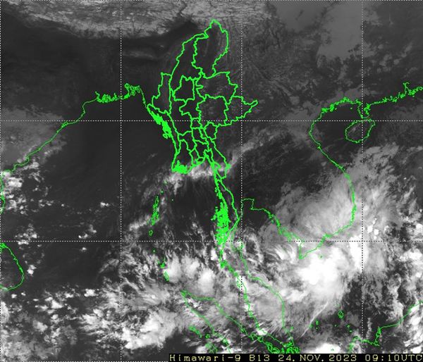 ဘင်္ဂလားပင်လယ်အော်အခြေအနေ။ ကပ္ပလီပင်လယ်ပြင်နှင့် ဘင်္ဂလားပင်လယ်အော်အရှေ့တောင်ပိုင်းတို့တွင် တိမ်အသင့်အတင့်မှ တိမ်ထူထပ်နေပြီး၊ ကျန်ဘင်္ဂလားပင်လယ်အော်တို့တွင် တိမ်အနည်းငယ် ဖြစ်ထွန်းနေပါသည်။