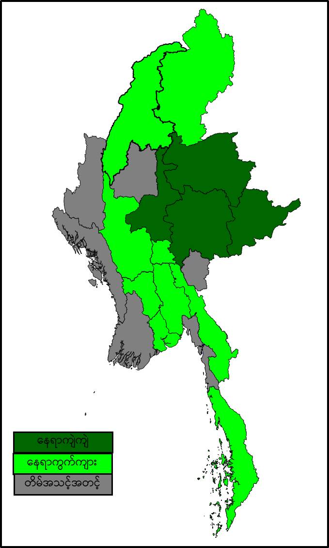 မနက်ဖြန်နံနက်အထိခန့်မှန်းချက်။ မန္တလေးတိုင်းဒေသကြီးနှင့် ရှမ်းပြည်နယ်တို့တွင် နေရာကျဲကျဲနှင့် နေပြည်တော်၊ စစ်ကိုင်းတိုင်းဒေသကြီးအထက်ပိုင်း၊ မကွေးတိုင်းဒေသကြီး၊ ပဲခူးတိုင်းဒေသကြီး၊ ရန်ကုန်တိုင်းဒေသကြီး၊ တနင်္သာရီတိုင်းဒေသကြီး၊ ကချင်ပြည်နယ်နှင့် ကရင်ပြည်နယ်တို့တွင် နေရာကွက်ကျား မိုးအနည်းငယ် ထစ်ချုန်းရွာနိုင်ပါသည်။ ရွာရန်ရာနှုန်း(၆၀) ဖြစ်ပါသည်။ ကျန်တိုင်းဒေသကြီးနှင့် ပြည်နယ်တို့တွင် တိမ်အသင့်အတင့် ဖြစ်ထွန်းမည်။