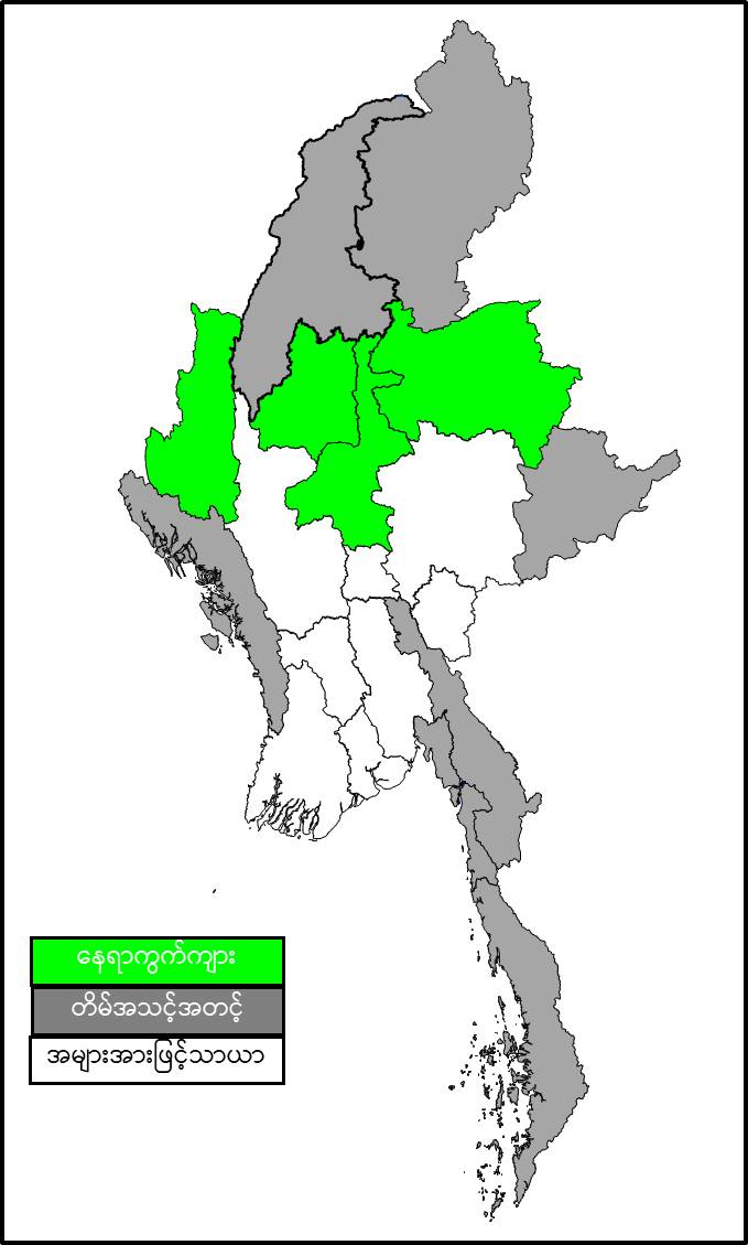 မနက်ဖြန်နံနက်အထိခန့်မှန်းချက်။ စစ်ကိုင်းတိုင်းဒေသကြီးအောက်ပိုင်း၊ မန္တလေးတိုင်းဒေသကြီး၊ ရှမ်းပြည်နယ်(မြောက်ပိုင်း)နှင့် ချင်းပြည်နယ်တို့တွင် နေရာကွက်ကျား မိုးအနည်းငယ် ထစ်ချုန်းရွာနိုင်ပါသည်။ ရွာရန်ရာနှုန်း(၆၀) ဖြစ်ပါသည်။ နေပြည်တော်၊ မကွေးတိုင်းဒေသကြီး၊ ပဲခူးတိုင်းဒေသကြီး၊ ရန်ကုန်တိုင်းဒေသကြီး၊ ဧရာဝတီတိုင်းဒေသကြီး၊ ရှမ်းပြည်နယ်(တောင်ပိုင်း)နှင့် ကယားပြည်နယ်တို့တွင် အများအားဖြင့် သာယာပြီး၊ ကျန်တိုင်းဒေသကြီးနှင့် ပြည်နယ်တို့တွင် တိမ်အသင့်အတင့် ဖြစ်ထွန်းမည်။