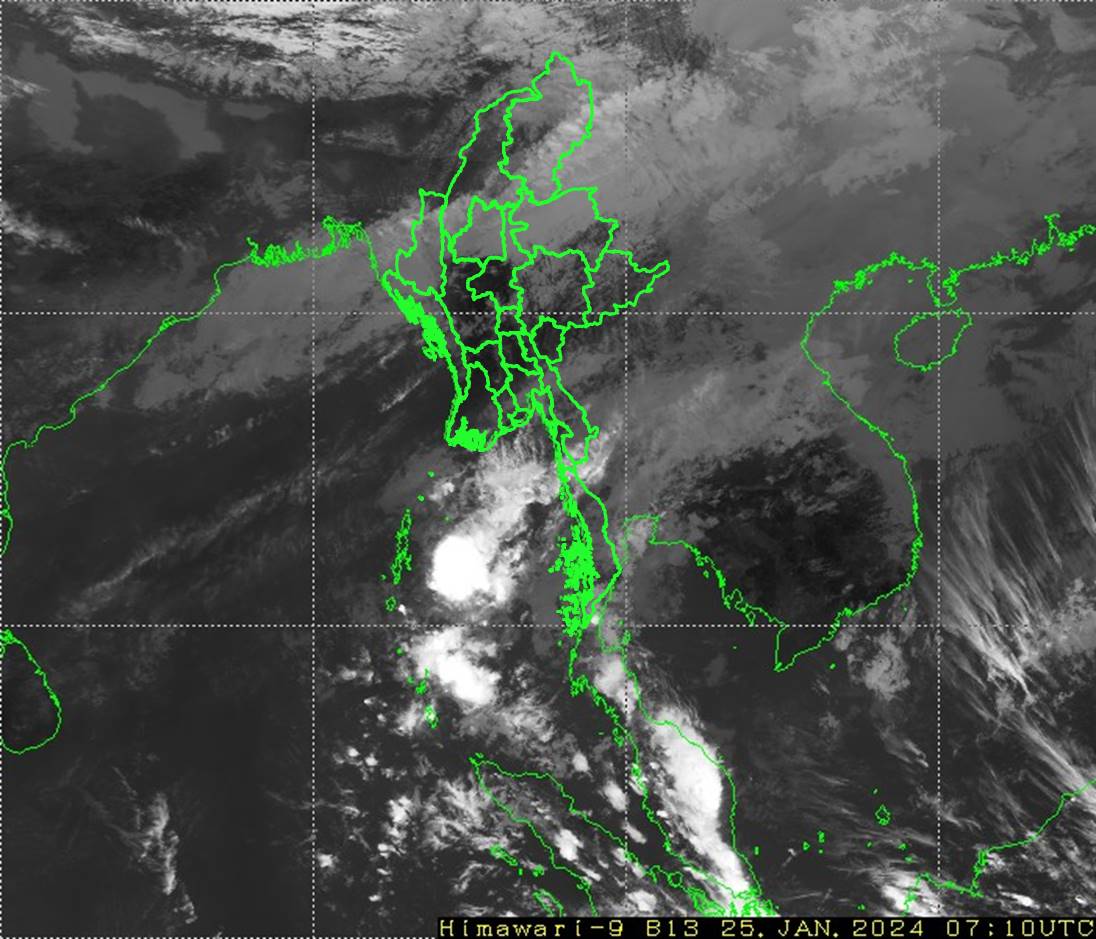 လွန်ခဲ့သော(၂၄)နာရီအတွင်းက စစ်ကိုင်းတိုင်းဒေသကြီးအထက်ပိုင်းနှင့် ချင်းပြည်နယ်တို့တွင် နေရာအနှံ့အပြား၊ ကချင်ပြည်နယ်တွင် နေရာစိပ်စိပ်၊ စစ်ကိုင်းတိုင်းဒေသကြီးအောက်ပိုင်းနှင့် တနင်္သာရီတိုင်းဒေသကြီးတို့တွင် နေရာကျဲကျဲနှင့် မန္တလေးတိုင်းဒေသကြီး၊ ရန်ကုန်တိုင်းဒေသကြီးနှင့် ရှမ်းပြည်နယ်(မြောက်ပိုင်း)တို့တွင် နေရာကွက်ကျား မိုးထစ်ချုန်းရွာခဲ့ပြီး၊ ကျန်တိုင်းဒေသကြီးနှင့် ပြည်နယ်တို့တွင် တိမ်အသင့်အတင့် ဖြစ်ထွန်းခဲ့ပါသည်။ ညအပူချိန်များမှာ မကွေးတိုင်းဒေသကြီး၊ ပဲခူးတိုင်းဒေသကြီး၊ ဧရာဝတီတိုင်းဒေသကြီး၊ ကချင်ပြည်နယ်နှင့် ရခိုင်ပြည်နယ်တို့တွင် ဇန်နဝါရီလ၏ ပျမ်းမျှအပူချိန်တို့ထက် (၂)ဒီဂရီစင်တီဂရိတ်၊ စစ်ကိုင်းတိုင်းဒေသကြီးအထက်ပိုင်း၊ မန္တလေးတိုင်းဒေသကြီး၊ ရှမ်းပြည်နယ် (တောင်ပိုင်း)၊ ကယားပြည်နယ်၊ ကရင်ပြည်နယ်နှင့် မွန်ပြည်နယ်တို့တွင် ဇန်နဝါရီလ၏ ပျမ်းမျှအပူချိန်တို့ထက် (၃)ဒီဂရီစင်တီဂရိတ်မှ (၄)ဒီဂရီစင်တီဂရိတ်အထိနှင့် စစ်ကိုင်းတိုင်းဒေသကြီးအောက်ပိုင်းနှင့် ရှမ်းပြည်နယ်(မြောက်ပိုင်း) တို့တွင် ဇန်နဝါရီလ၏ ပျမ်းမျှအပူချိန်တို့ထက် (၅)ဒီဂရီစင်တီဂရိတ်အထိ ပိုခဲ့ကာ၊ ကျန်တိုင်းဒေသကြီးနှင့် ပြည်နယ်တို့တွင် ဇန်နဝါရီလ၏ ပျမ်းမျှအပူချိန်ခန့်သာရှိခဲ့ပါသည်။ ထူးခြားသည့် ညအပူချိန်များမှာ ဟားခါးမြို့တွင် (၂)ဒီဂရီစင်တီဂရိတ်၊ နမ့်စန်မြို့(ရှမ်းပြည်နယ်တောင်ပိုင်း)တွင် (၄)ဒီဂရီစင်တီဂရိတ်၊ ပူတာအိုမြို့၊ ပင်လောင်းမြို့၊ ဟဲဟိုးမြို့၊ မိုင်းယန်းမြို့၊ ဖလမ်းမြို့၊ တီးတိန်မြို့နှင့် တွန်းဇံမြို့တို့တွင် (၆)ဒီဂရီစင်တီဂရိတ်စီနှင့် လွိုင်လင်မြို့တွင် (၈)ဒီဂရီစင်တီဂရိတ်တို့ ဖြစ်ကြပါသည်။ မှတ်သားဖွယ်ရာ မိုးရေချိန်များမှာ ဟားခါးမြို့တွင် (၀.၃၅)လက်မ၊ ထားဝယ်မြို့တွင် (၀.၂၈)လက်မ၊ မိုးကုတ်မြို့နှင့် လောင်းလုံးမြို့တို့တွင် (၀.၂၀)လက်မစီနှင့် လားရှိုးမြို့၊ ဖလမ်းမြို့၊ တီးတိန်မြို့နှင့် မင်းကင်းမြို့တို့တွင် (၀.၁၂) လက်မစီတို့ ဖြစ်ကြပါသည်။