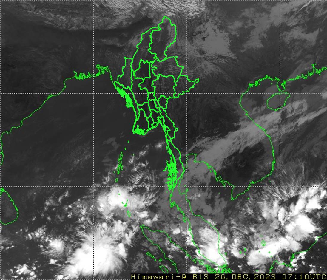 လွန်ခဲ့သော(၂၄)နာရီအတွင်းက ကချင်ပြည်နယ်တွင် နေရာကျဲကျဲ၊ စစ်ကိုင်းတိုင်းဒေသကြီး၊ မန္တလေးတိုင်းဒေသကြီးနှင့် ရှမ်းပြည်နယ်(မြောက်ပိုင်း)တို့တွင် နေရာကွက်ကျား မိုးထစ်ချုန်းရွာခဲ့ပြီး၊ နေပြည်တော်တွင် အများအားဖြင့် သာယာခဲ့ကာ၊ ကျန်တိုင်းဒေသကြီးနှင့် ပြည်နယ်တို့တွင် တိမ်အသင့်အတင့် ဖြစ်ထွန်းခဲ့ပါသည်။ ညအပူချိန်များမှာ ပဲခူးတိုင်းဒေသကြီး၊ ရှမ်းပြည်နယ် (မြောက်ပိုင်းနှင့် တောင်ပိုင်း)၊ ကယားပြည်နယ်နှင့် မွန်ပြည်နယ်တို့တွင် ဒီဇင်ဘာလ၏ ပျမ်းမျှ အပူချိန်တို့ထက် (၂)ဒီဂရီစင်တီဂရိတ်နှင့် နေပြည်တော်၊ မန္တလေးတိုင်းဒေသကြီး၊ မကွေးတိုင်းဒေသကြီး၊ ဧရာဝတီတိုင်းဒေသကြီး၊ ကချင်ပြည်နယ်၊ ရခိုင်ပြည်နယ်နှင့် ကရင်ပြည်နယ်တို့တွင် ဒီဇင်ဘာလ၏ ပျမ်းမျှအပူချိန်တို့ထက် (၃)ဒီဂရီစင်တီဂရိတ်မှ (၄)ဒီဂရီစင်တီဂရိတ်အထိနှင့် စစ်ကိုင်းတိုင်းဒေသကြီးတွင် ဒီဇင်ဘာလ၏ ပျမ်းမျှအပူချိန်ထက် (၅)ဒီဂရီစင်တီဂရိတ် ပိုခဲ့ပြီး၊ ကျန်တိုင်းဒေသကြီးနှင့် ပြည်နယ်တို့တွင် ဒီဇင်ဘာလ၏ ပျမ်းမျှအပူချိန်ခန့်သာ ရှိခဲ့ပါသည်။ ထူးခြားသည့် ညအပူချိန်များမှာ ဟားခါးမြို့တွင် (၁)ဒီဂရီစင်တီဂရိတ်၊ ဟဲဟိုးမြို့တွင် (၅)ဒီဂရီစင်တီဂရိတ်၊ လွိုင်လင်မြို့နှင့် မိုင်းယန်းမြို့တို့တွင် (၆)ဒီဂရီစင်တီဂရိတ်စီနှင့် ပင်လောင်းမြို့၊ ကျိုင်းတုံမြို့နှင့် တီးတိန်မြို့တို့တွင် (၇)ဒီဂရီစင်တီဂရိတ်စီတို့ ဖြစ်ကြပါသည်။ မှတ်သားဖွယ်ရာ မိုးရေချိန်များမှာ ရွှေကူမြို့တွင် (၀.၂၈)လက်မ၊ ဗန်းမော်မြို့နှင့် မူဆယ်မြို့တို့တွင် (၀.၂၄)လက်မစီနှင့် မိုးကောင်းမြို့တွင် (၀.၀၈)လက်မတို့ ဖြစ်ကြပါသည်။
